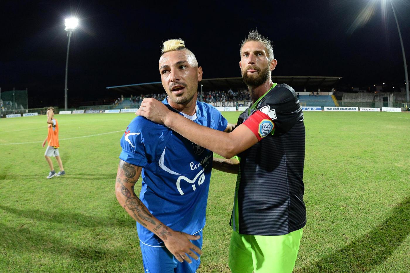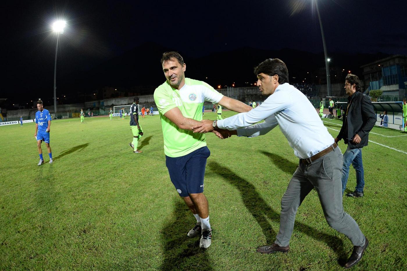 Foto LaPresse – Gerardo Cafaro20/09/2015 Pagani (Italia)Sport CalcioPaganese vs Fidelis AndriaCampionato di Calcio Lega Pro girone C 2015 2016 – Stadio "Marcello Torre"Nella foto : Caccavallo e Cortellini, capitano della Fidelis Andria a fine partitaPhoto LaPresse – Gerardo Cafaro20 September 2015 Pagani (Italy)Sport SoccerPaganese vs Fidelis AndriaLega Pro group C 2015/2016 – "Marcello Torre" Stadium In the pic: Caccavallo and Cortellini, captain of Fidelis Andria, at end of the match