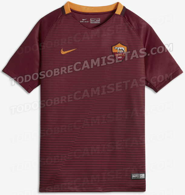 La divisa sarà rossa con delle righine orizzontali, quasi monocolore, nella parte centrale e colletto arancione per creare il famoso giallorosso, colore sociale della As Roma. Ecco le prime immagini.
