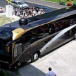 Nell’ultimo tratto di strada, prima di entrare nello stadio Olimpico, il pullman della Juventus è stato danneggiato: un vetro esterno è stato infranto dal lancio di oggetti da parte di un gruppo di sostenitori granata, che hanno scagliato contro il mezzo dei bianconeri anche delle uova. Foto Twitter.