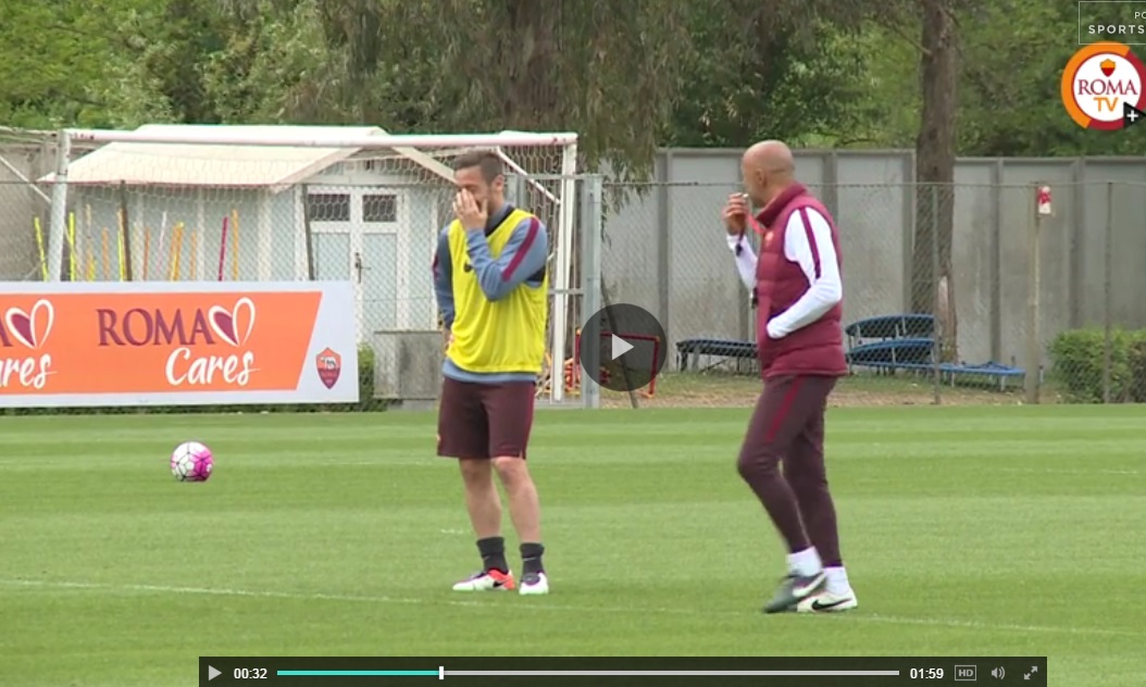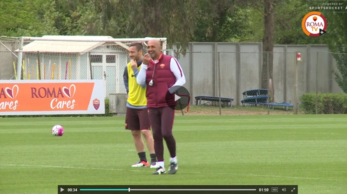 Totti e Spalletti, sorrisi in allenamento dopo lite Bergamo (foto da video Roma Tv)