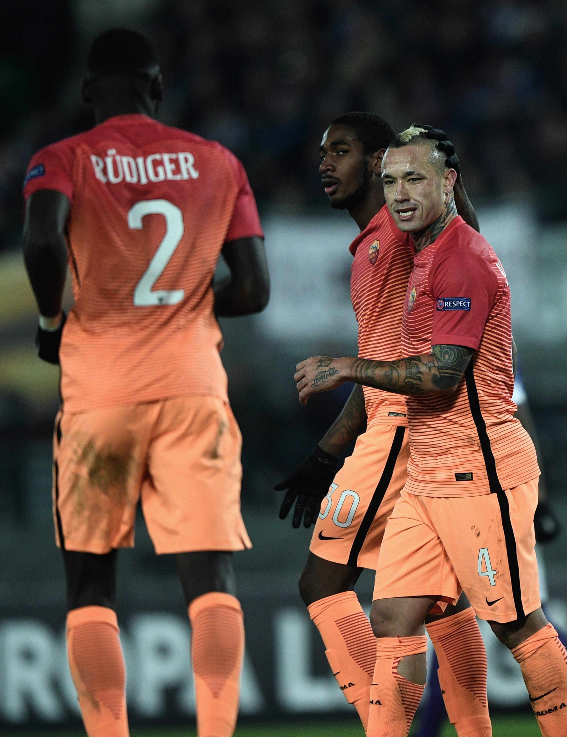 Roma (3-4-2-1): Alisson 6, Ruediger 6, De Rossi 6.5, Juan Jesùs 6, Bruno Peres 6.5, Paredes 7, Strootman 6, El Shaarawy 6.5 (26′ st Gerson 6), Perotti 6.5 (39′ st Iturbe sv), Nainggolan 7, Dzeko 7.5. (1 Szczesny, 20 Fazio, 91 Marchizza, 55 De Santis, 11 Salah). All.: Spalletti 7.