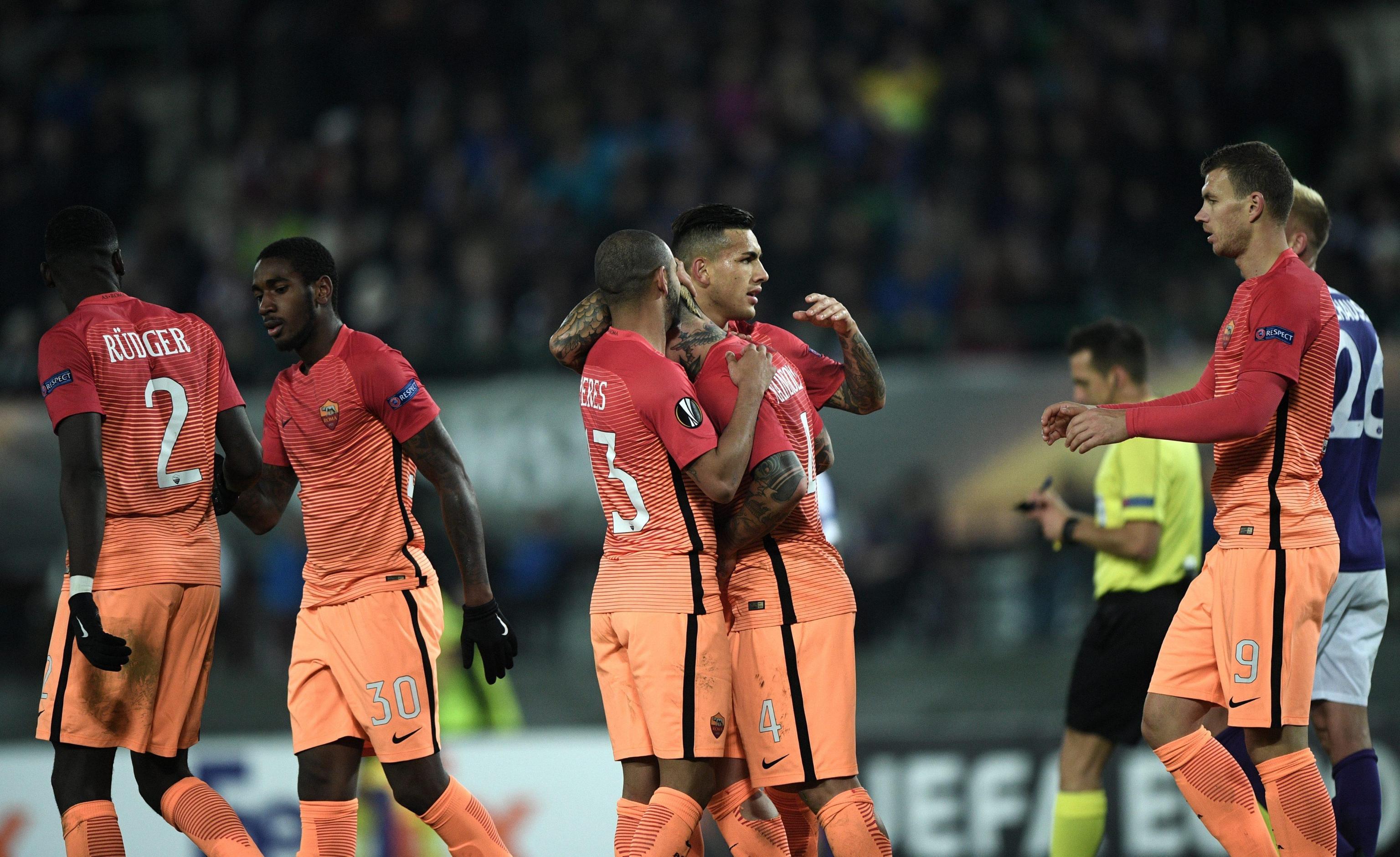 VIENNA – La Roma cala il poker a Vienna contro l’Austria e si prende la testa del girone E d’Europa League. I giallorossi non commettono gli stessi errori della gara di due settimane fa, quando subirono nel finale una rocambolesca rimonta, e all’Ernst Happel Stadion portano a casa un successo prezioso in ottica qualificazione. Il 4-2 finale porta la firma di Dzeko (doppietta), De Rossi e Nainggolan. Con gli uomini contati in difesa a causa dei numerosi infortuni Spalletti opta per un 3-4-2-1 schierando De Rossi centrale di una linea a tre, con ai lati Ruediger e Juan Jesus.