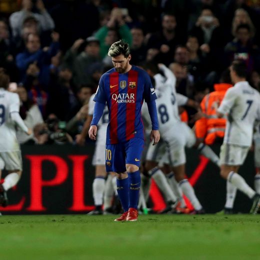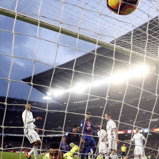 Il Real pensa soprattutto a non prenderle, Ronaldo fa più il terzino che l’ala (il suo primo tiro in porta arriva solo al 37′ ma è fuori specchio), mentre Benzema non la vede mai. Nella ripresa i padroni di casa entrano in campo con un diverso spirito e la ruota della partita gira al minuto 8: merito di Luis Suarez che torna a ‘mordere’ con un un colpo di testa su cross di Neymar, bravo ad aggirare Lucas Vazquez e anticipare Varane.