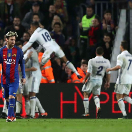 Però c’è tempo ancora per un sussulto al 93′, con Sergi Roberto (colpo di testa da 18 metri) e Jordi Alba che cercano inutilmente di riscrivere il destino, ma Casemiro salva sulla linea e lascia tutto com’è in vetta alla Liga, allungando a 33 la striscia di gare senza sconfitta per il Real in campionato.