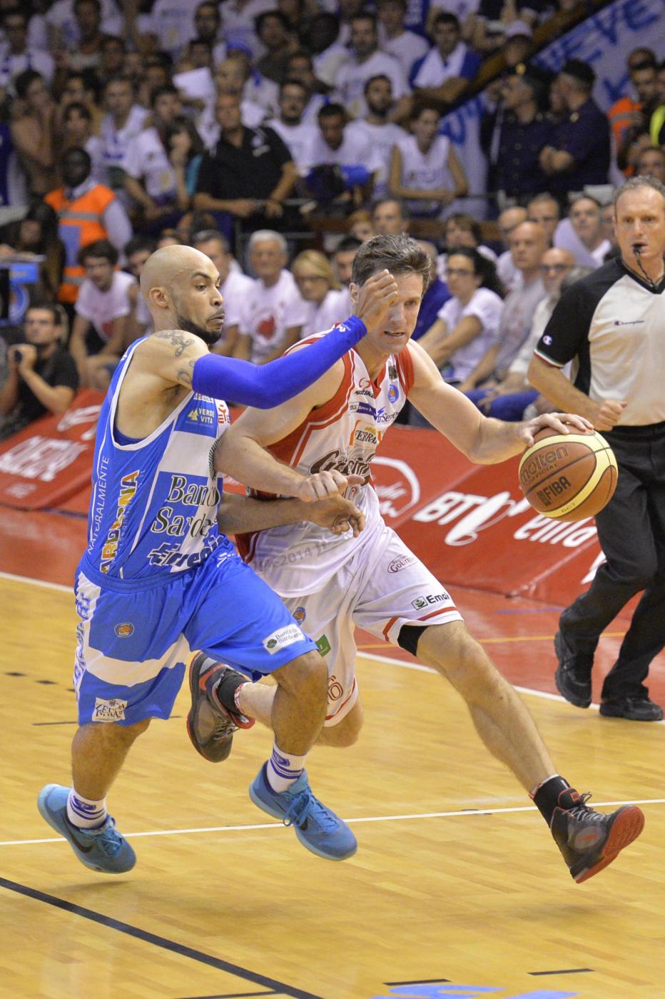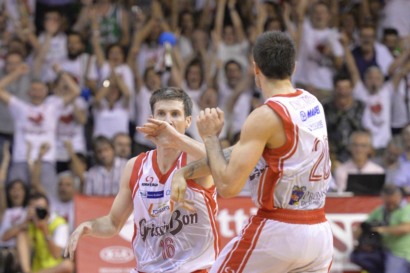 Gara7 è stata un’altra battaglia senza quartiere, degno epilogo di una serie-scudetto bellissima, che entra di diritto nella videoteca delle più belle della storia del nostro basket. Lo scudetto passa di mano più e più volte, Reggio Emilia lo assapora a lungo ma alla fine non lo vince. Foto LaPresse.