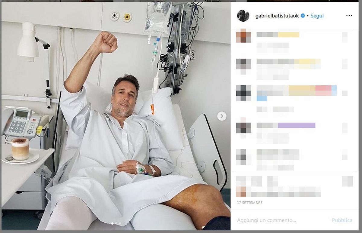Il 3 ottobre, ultimo post pubblicato da Batigol su Instagram, ha aggiornato i suoi fan scrivendo: “Grazie al dottor Beat Hintermann e alla sua squadra per questo intervento chirurgico che mi dà la speranza di tornare a camminare normalmente. Ci tenevo ad aggiornare i miei follower, la mia riabilitazione prosegue alla grande, presto tornerò in Argentina. Grazie a tutti i miei fan per l’appoggio”.