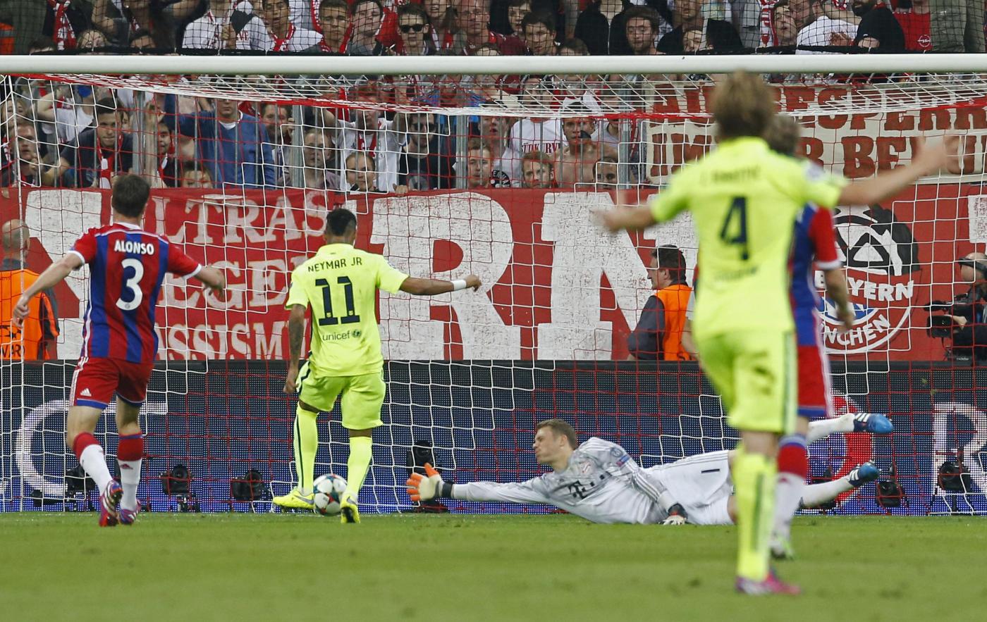 MONACO DI BAVIERA, GERMANIA – Bayern-Barcellona highlights-video gol: Benatia-Neymar (doppietta). Partenza lanciata del Bayern Monaco nel ritorno delle semifinali di Champions League. Il team tedesco è andato a segno dopo 7 minuti di gioco con Mehdi Benatia (1-0). L’ex calciatore della Roma ha segnato con un colpo di testa perfetto sugli sviluppi di un calcio d’angolo battuto in maniera impeccabile dall’ ex Real Madrid Xabi Alonso.