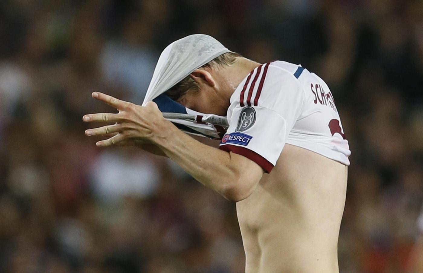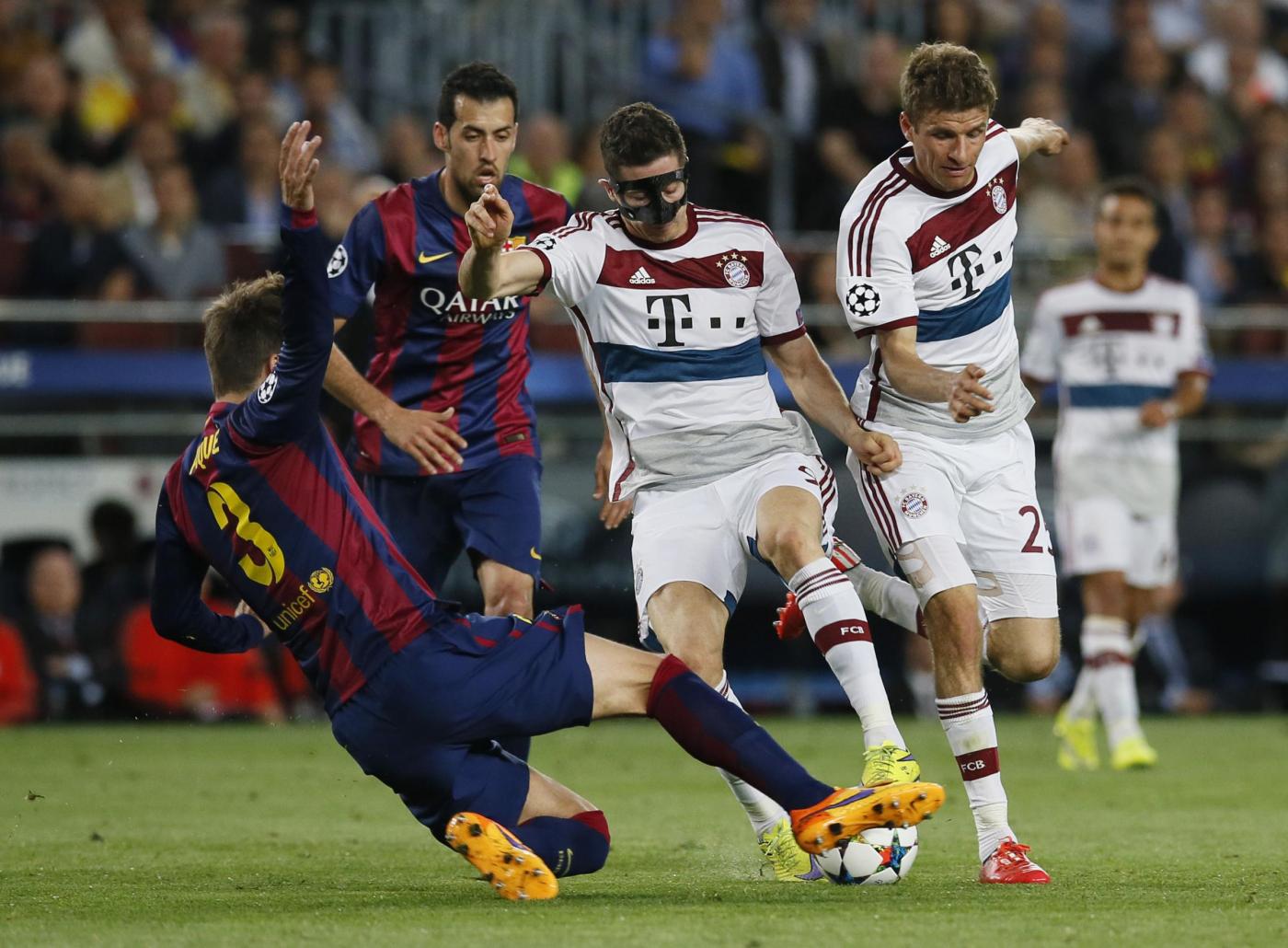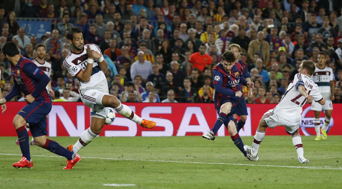 Le probabili formazioni di Bayern Monaco-Barcellona. BAYERN MONACO (4-3-3): Neuer; Rafinha, Boateng, Benatia, Bernat; Lahm, Thiago Alcantara, Xabi Alonso; Gotze, Thomas Muller, Lewandowski. Allenatore: Guardiola. BARCELLONA (4-3-3): Ter Stegen; Dani Alves, Pique, Mascherano, Jordi Alba; Iniesta, Busquets, Rakitic; Neymar, Messi, Suarez. Allenatore: Luis Enrique. Arbitro: Mark Clattenburg (Eng). Foto LaPresse.