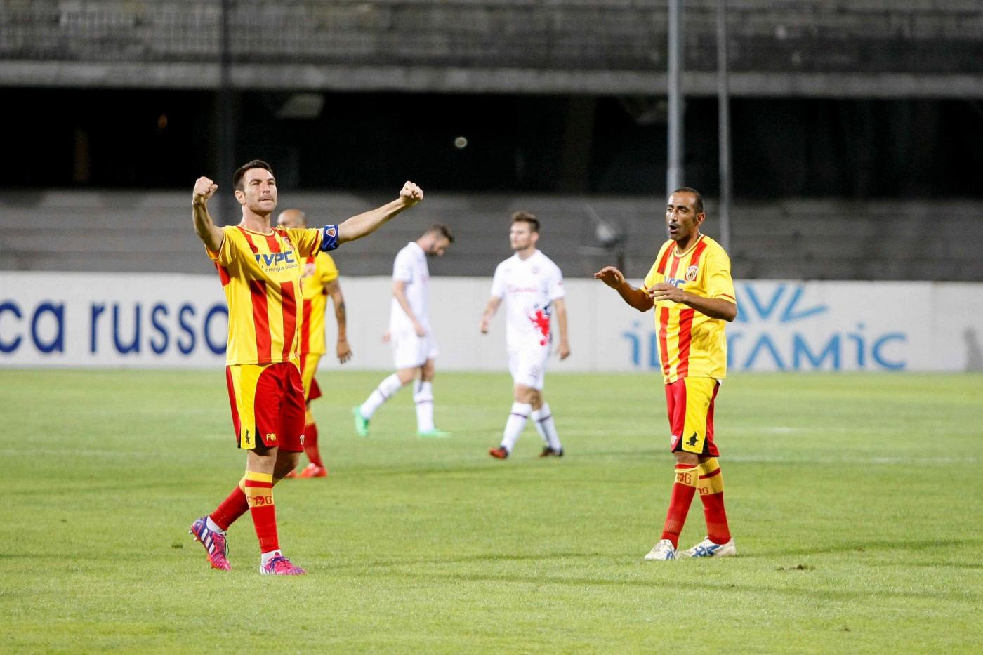 Foto LaPresse – Gerardo Cafaro20/09/2015 Benevento (Italia)Sport CalcioBenevento Calcio vs Foggia CalcioCampionato di Calcio Lega Pro girone C 2015 2016 – Stadio "Ciro Vigorito"Nella foto : Esultanza Lucioni Fabio (difensore), Photo LaPresse – Gerardo Cafaro20 September 2015 Benevento (Italy)Sport SoccerBenevento Calcio vs Foggia CalcioLega Pro group C 2015/2016 – "Ciro Vigorito" Stadium In the pic: