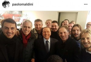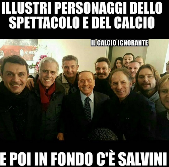 MILANO – Silvio Berlusconi si fa una foto con le vecchie glorie del Milan: ma tra Paolo Maldini, Franco Baresi e Daniele Massaro spunta…Matteo Salvini. Lo scatto è stato condiviso sui social network da alcuni ex campioni (in primis Maldini) e ha scatenato l’ilarità e anche le reazioni sdegnate degli utenti dei social network. Molti hanno scritto “che c’entra Salvini”, altri hanno scritto “rovina la foto”, ma per altri ancora invece è addirittura “il tocco di classe” (sarcasticamente parlando).