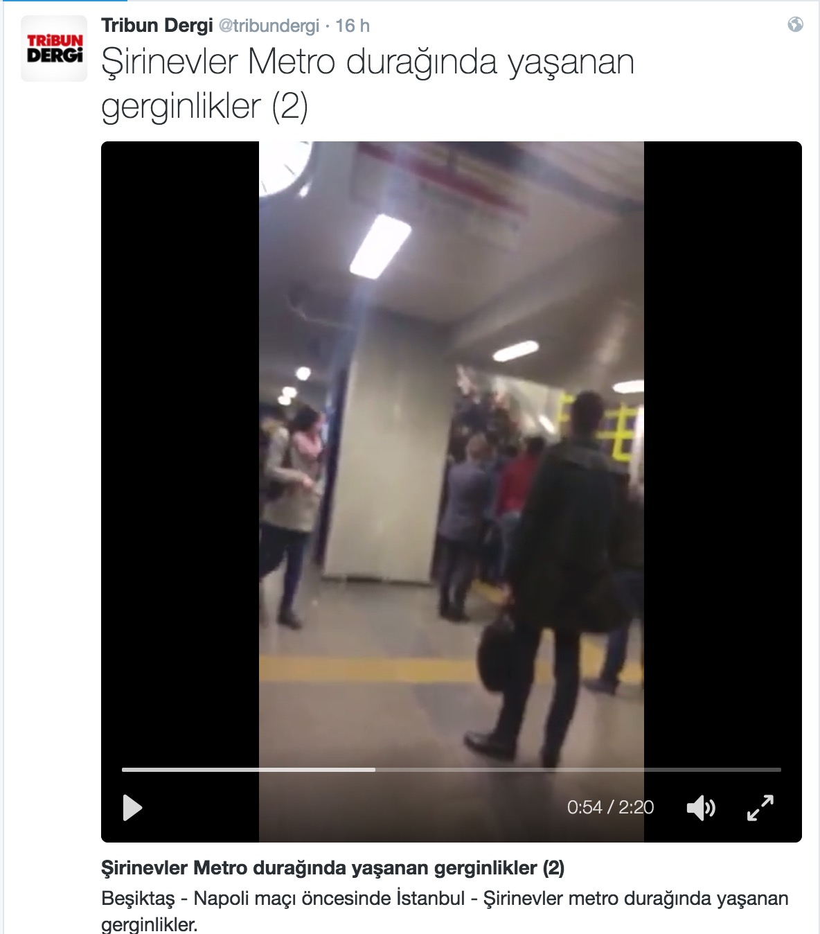 Il gruppo dei napoletani non ha il biglietto della metro. Nel video che vi mostriamo (clicca sul player in fondo all’articolo), dal minuto 1.30, si vedono chiaramente due ultras partenopei discutere sulla banchina dei treni con un uomo con i capelli bianchi che appare come un dirigente di polizia in borghese. I napoletani dicono di voler fare il biglietto, ma di non avere le lire turche, ma solo euro. Il turco risponde, in italiano, che quando i turchi vengono in Italia usano gli euro, non le lire turche.