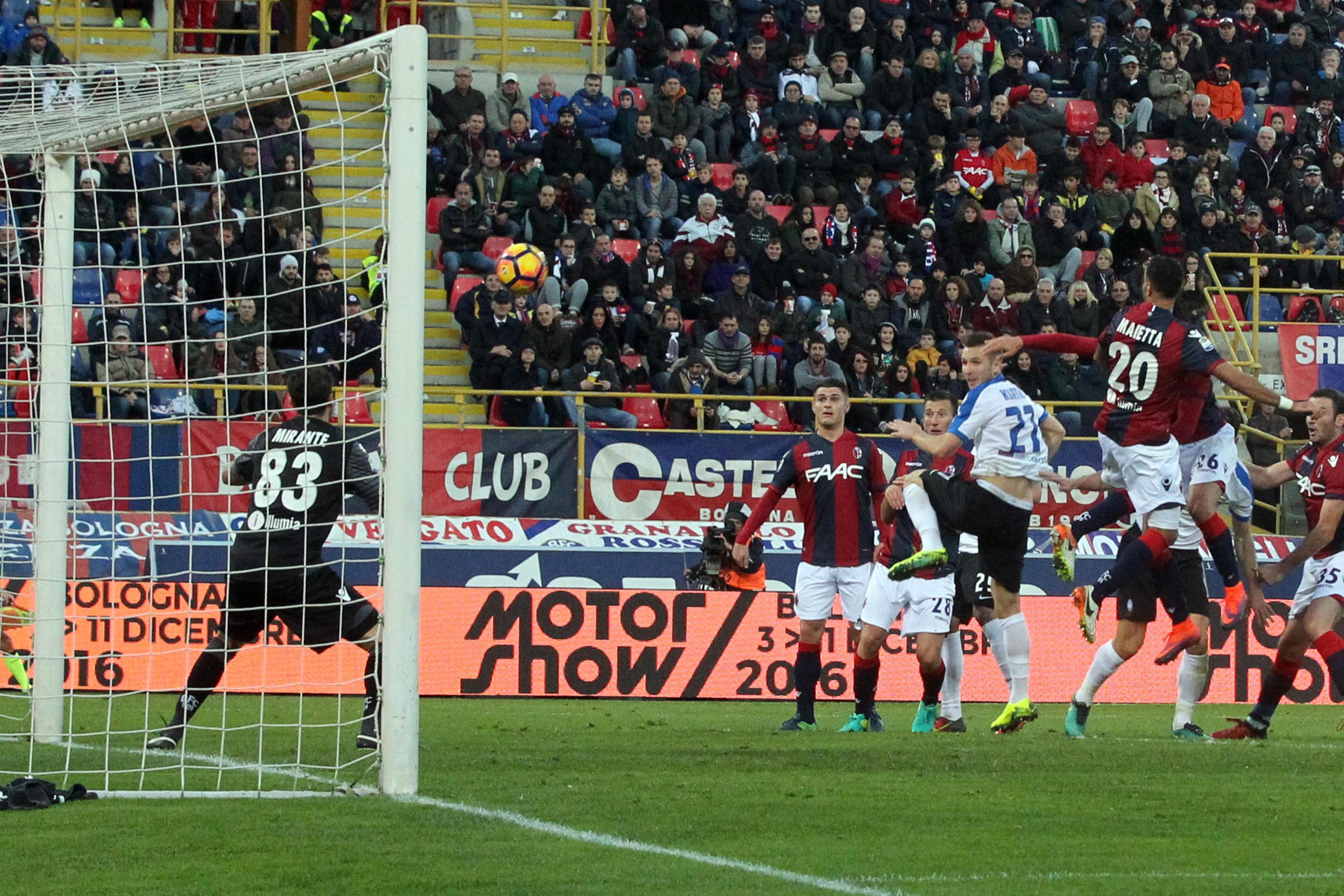 L’affetto del pubblico non è però sufficiente a proteggere il portiere dal primo tiro verso la sua porta, né la propria squadra dalla forma dei bergamaschi che appare strabordante, nell’arrivare primi sulle palle vaganti, nell’indovinare i tempi delle giocate intorno a Gomez e nella forza fisica con cui si oppongono al rientro di un Bologna che non sta del tutto a guardare, ma che nel primo tempo raccoglie solo una traversa su punizione di Viviani.