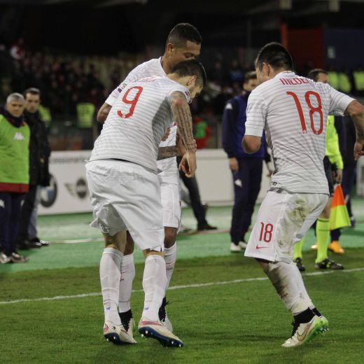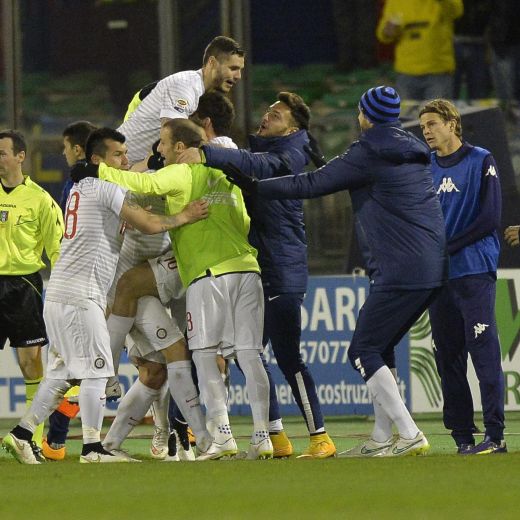 Inter (4-3-1-2): Carrizo 5.5, Campagnaro 5.5 , Vidic 5.5, Juan Jesus 6, Santon 6.5; Guarin 6.5, Medel 6.5; Brozovic 6 (37′ st Hernanes); Kovacic 7 (47′ st Kuzmanovic sv), Podolski 5.5 (36′ Dodò sv), Icardi 7. (46 Berni, 23 Ranocchia, 6 Andreolli, Di Marco, 33 D’Ambrosio,, 20 Obi, 8 Palacio, 28 Puscas, 91 Shaqiri). All. Mancini 6 Arbitro: Mazzoleni di Bergamo 6 Reti: 2′ st Kovacic, 24′ st Icardi, aut. Carrizo Angoli: 8 a 7 Recupero: 0 e 4′ Ammoniti: Brozovic, Cop, Campagnaro per scorrettezze, Avelar per comportamento non regolamentare Spettatori: 14.000.