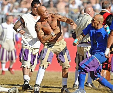 FIRENZE – Come ogni anno appuntamento fisso a Firenze per il calcio storico. Tra muscoli, sudore, sabbia e terra, 4 squadre si sono sfidati nella disciplina antenata del calcio moderno ma decisamente più fisica. Talmente fisica che il Daily Mail ha ironizzato: “I fighetti che stanno giocando agli Europei qui sarebbero già morti”.