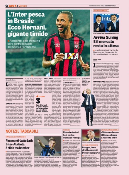 Calciomercato Inter, Hernani Azevedo Junior: colpo dal Brasile (La Gazzetta dello Sport)