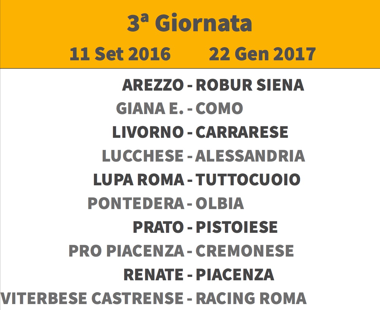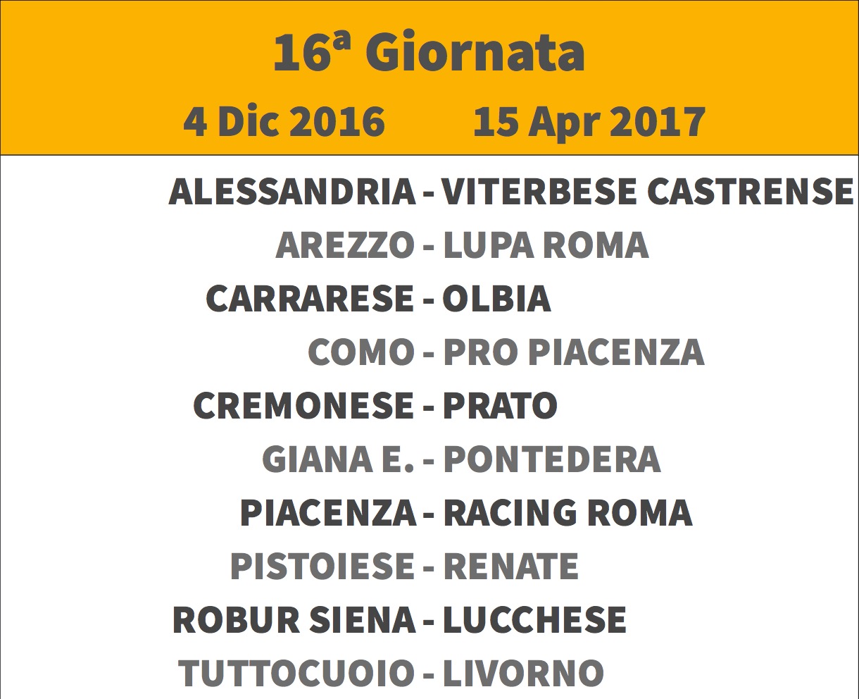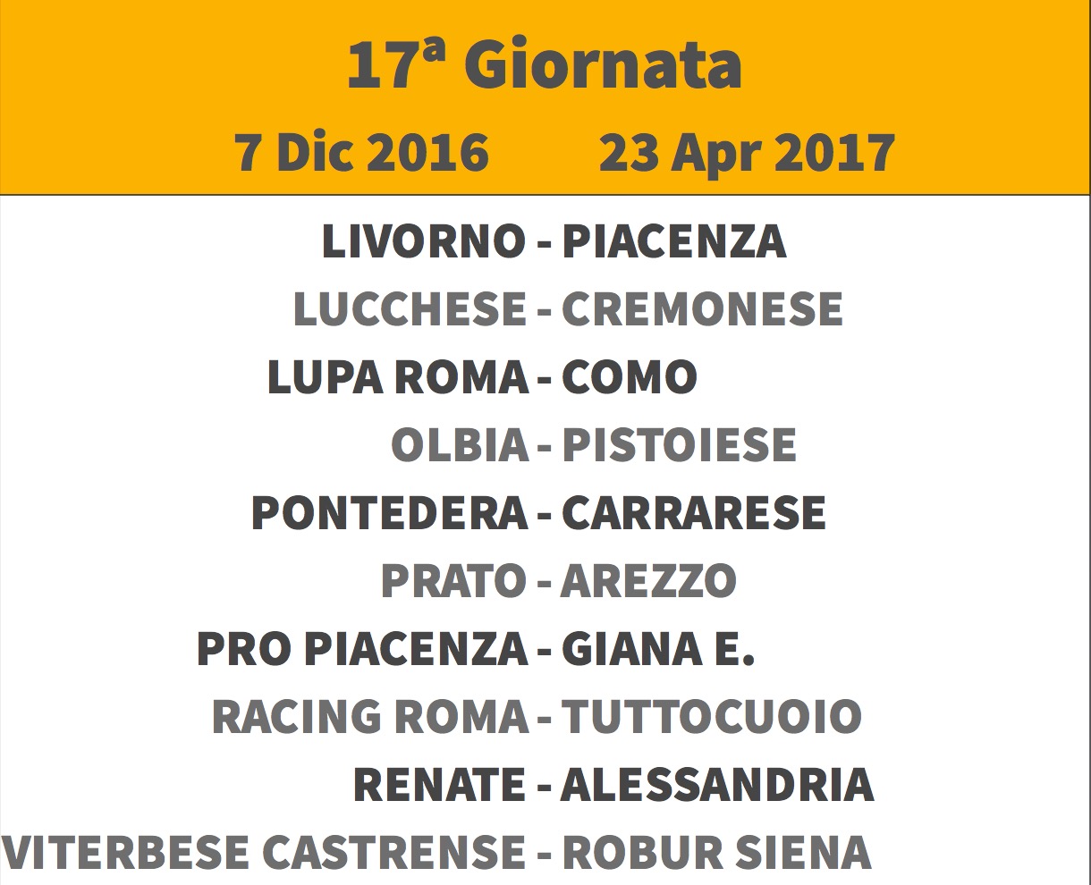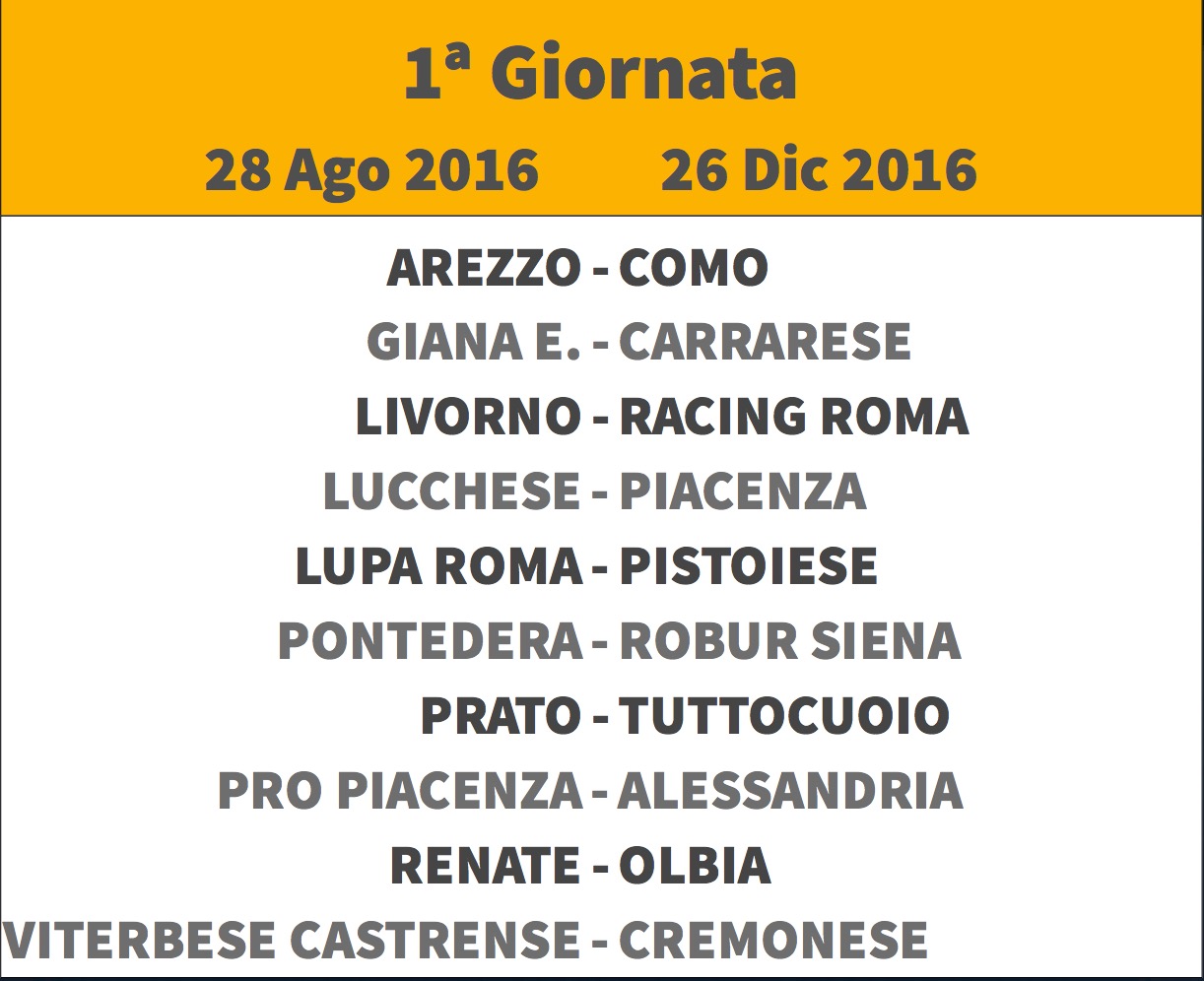Calendario GIRONE B LEGA PRO 2016-17 – Calendario GIRONE C LEGA PRO 2016-17.