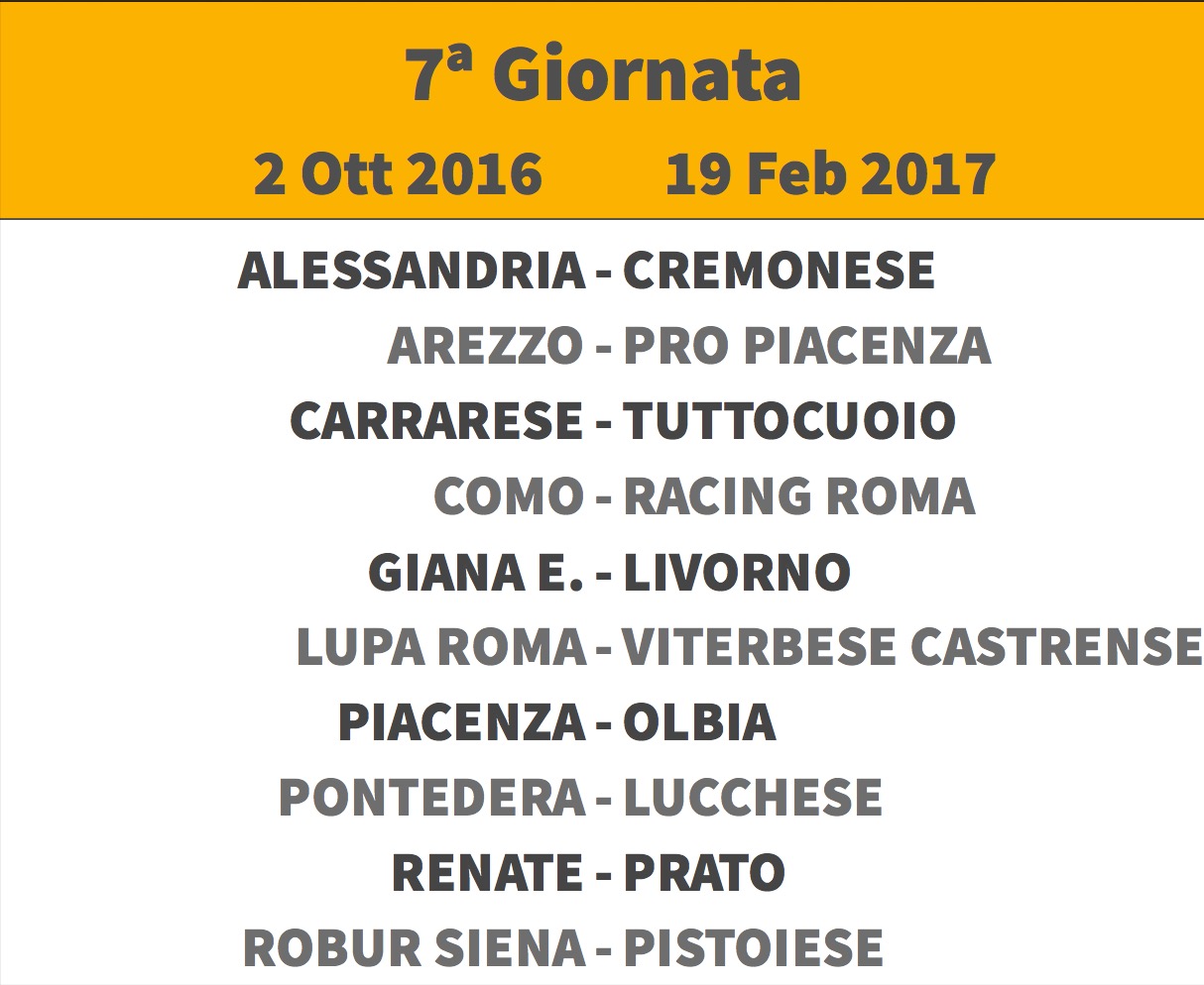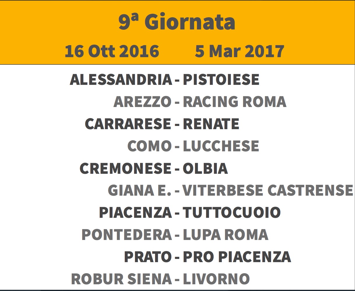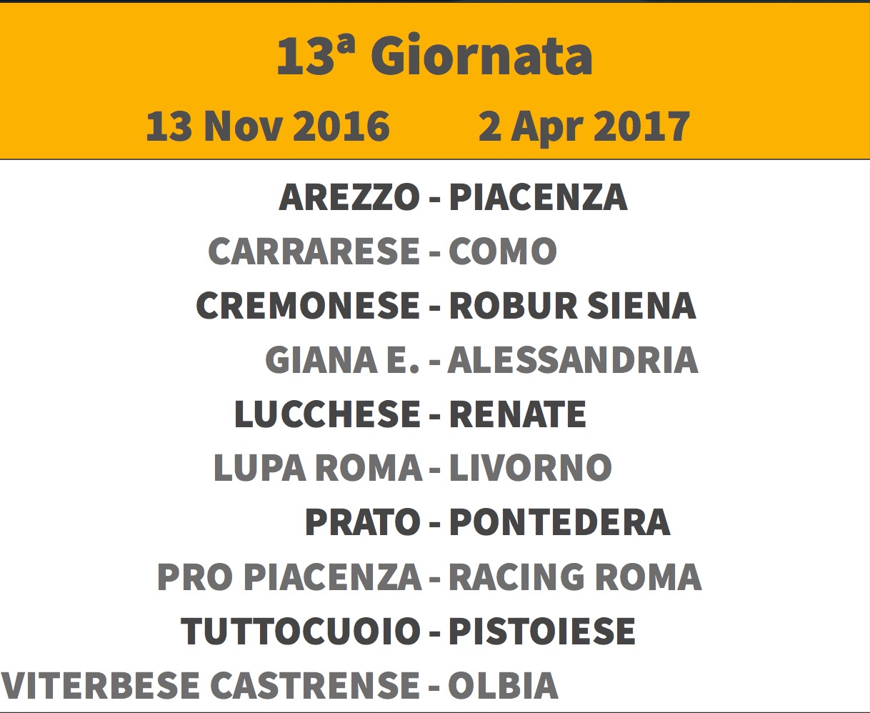 Calendario GIRONE B LEGA PRO 2016-17 – Calendario GIRONE C LEGA PRO 2016-17.