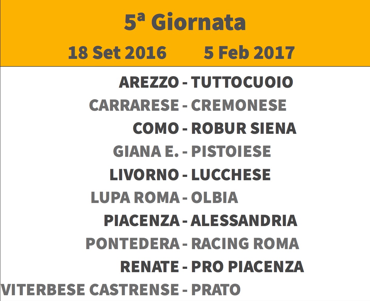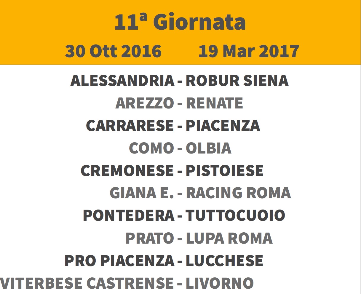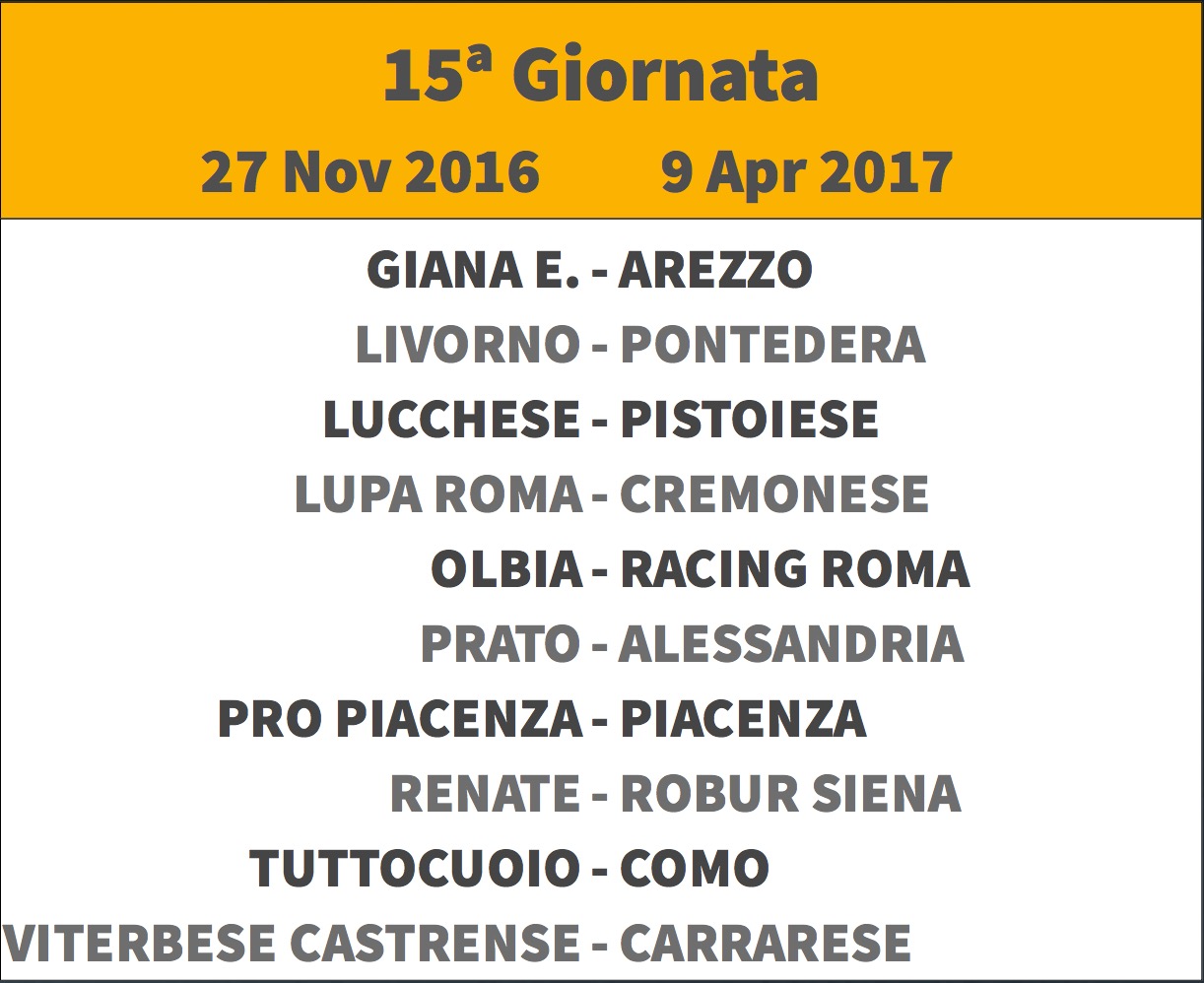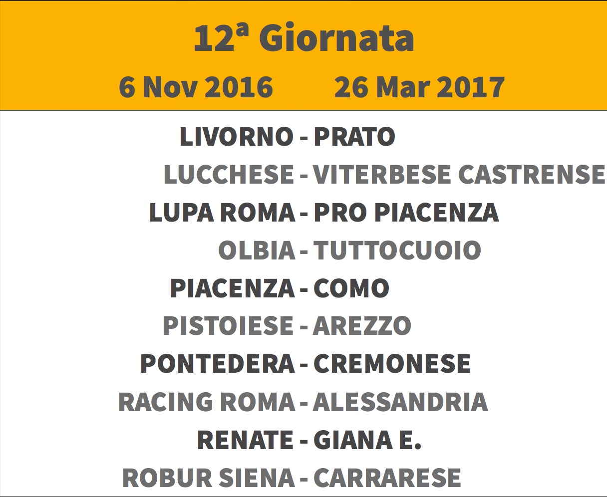 Calendario GIRONE B LEGA PRO 2016-17 – Calendario GIRONE C LEGA PRO 2016-17.