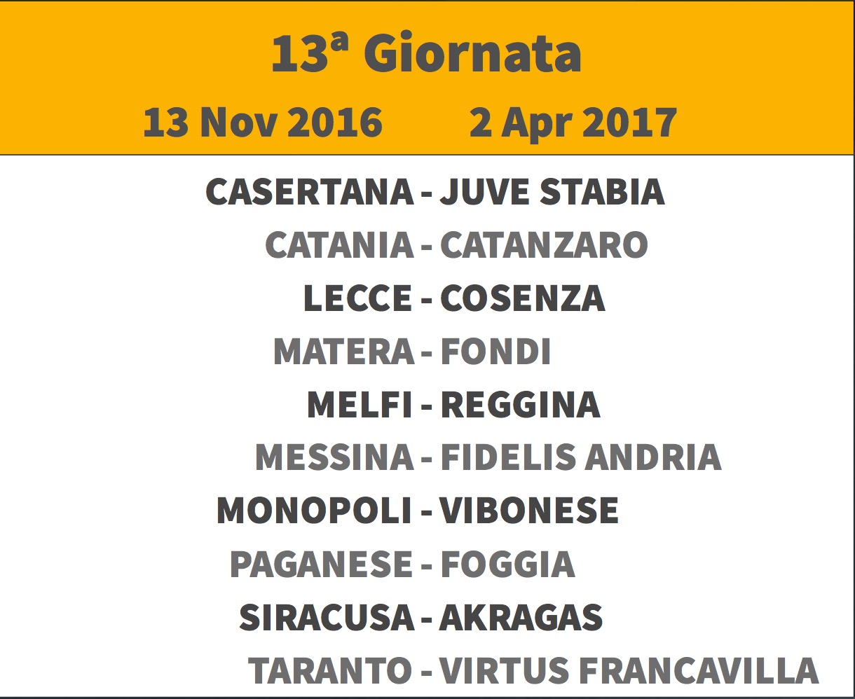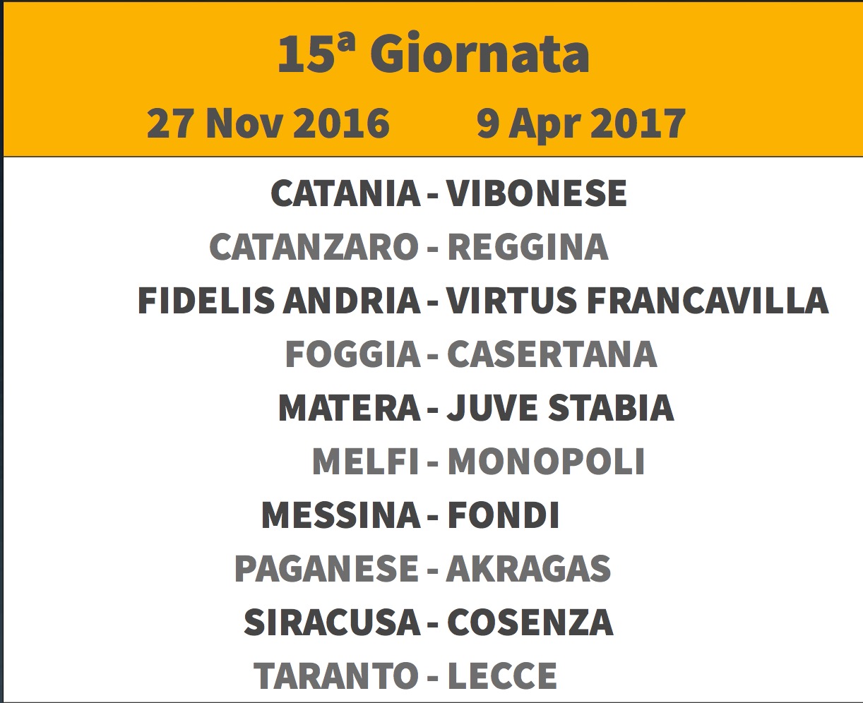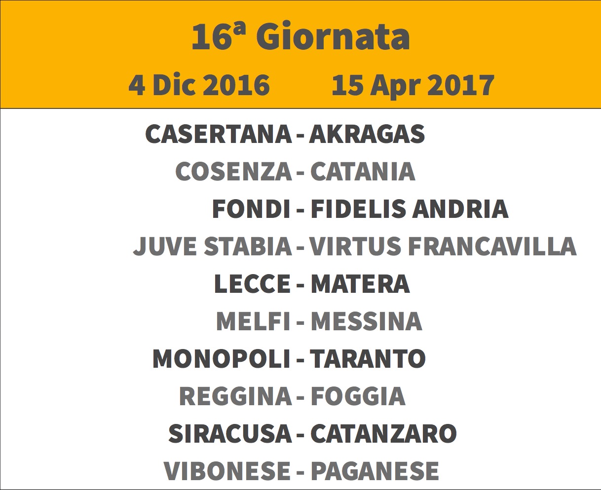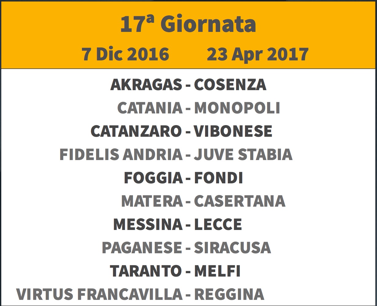 Calendario GIRONE A LEGA PRO 2016-17 – Calendario GIRONE B LEGA PRO 2016-17.