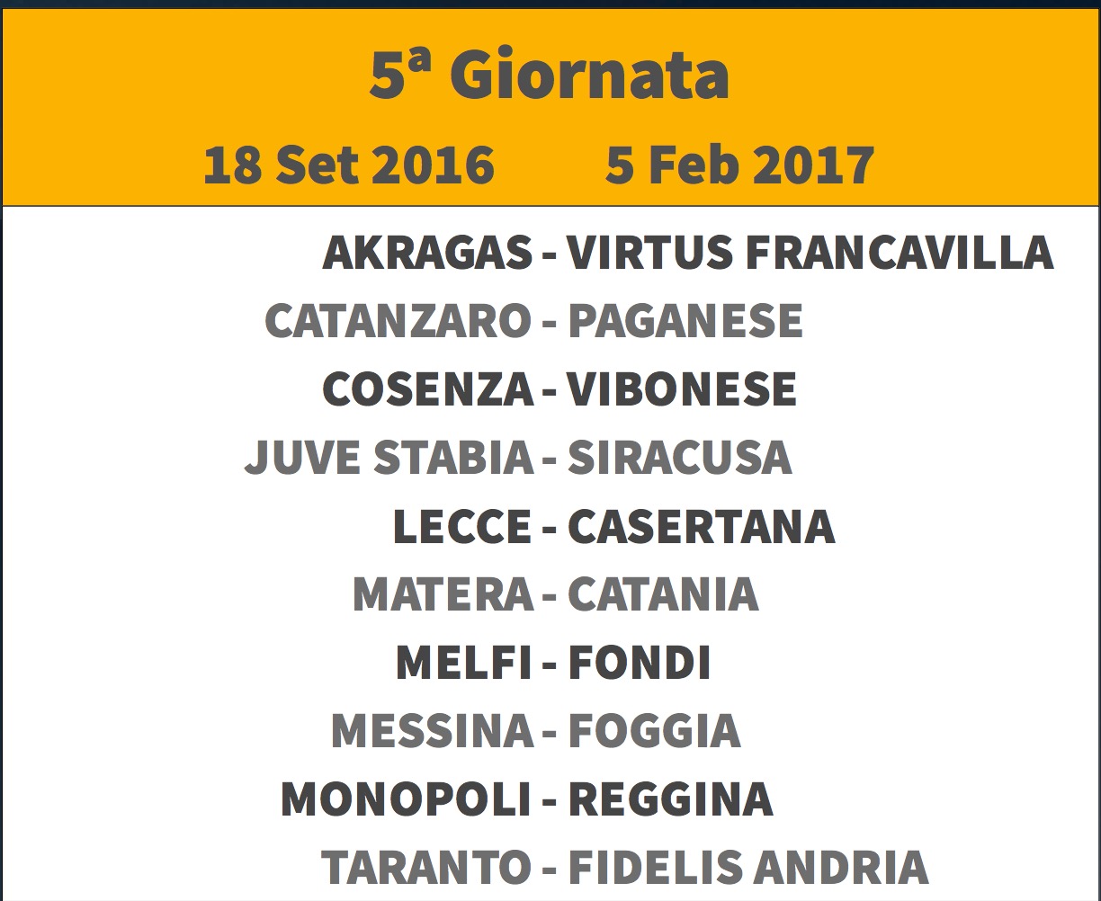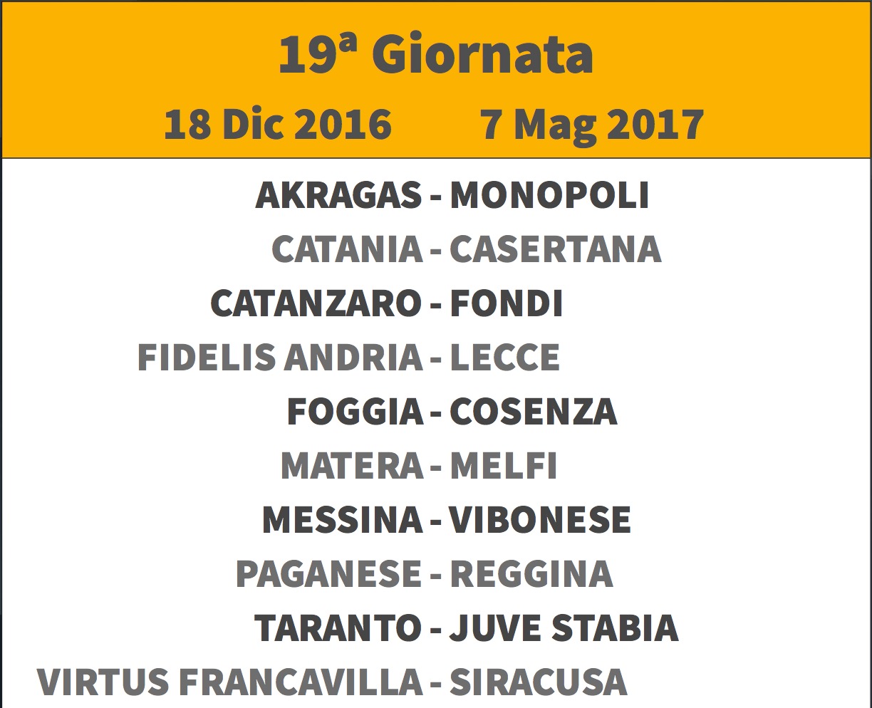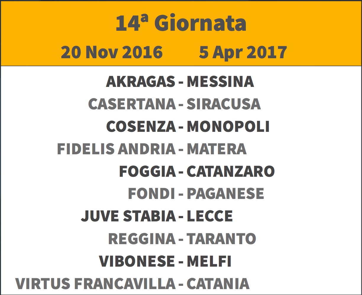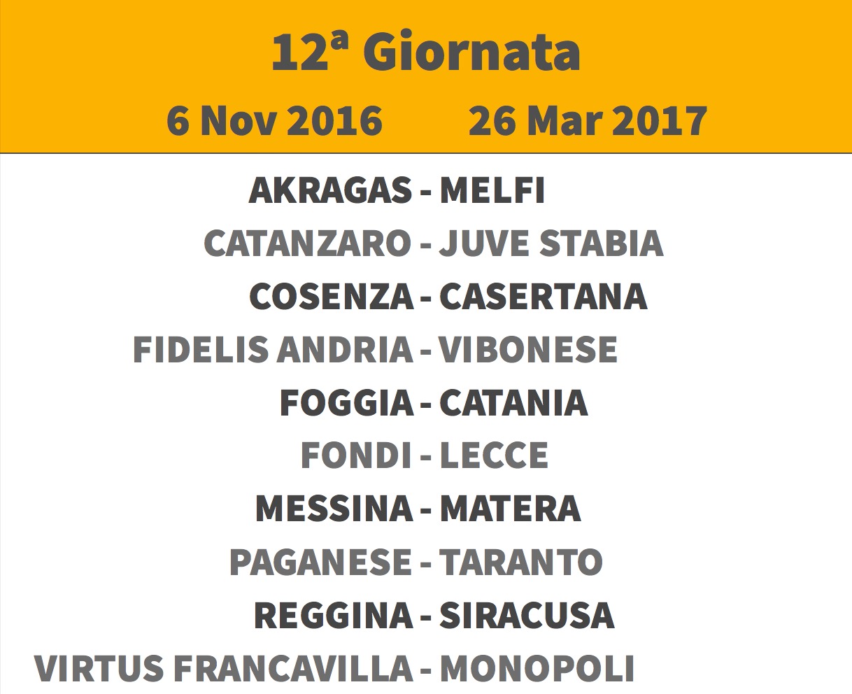 Calendario GIRONE A LEGA PRO 2016-17 – Calendario GIRONE B LEGA PRO 2016-17.