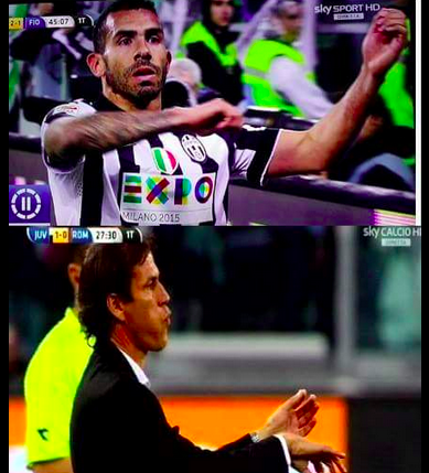Carlos Tevez, famoso per le sue esultanze “particolari”, ha deciso di celebrare le reti segnate alla Fiorentina con il gesto del “violino”. Impossibile non pensare a Rudi Garcia. L’allenatore della Roma fece lo stesso gesto del “violino” dopo aver subito due calci di rigore nel corso di Juventus-Roma, partita che i bianconeri vinsero per 3 a 2.