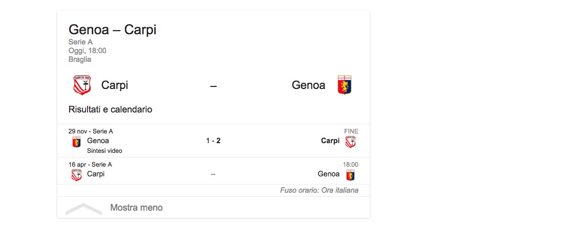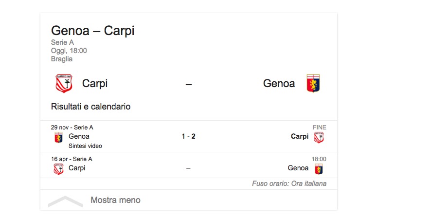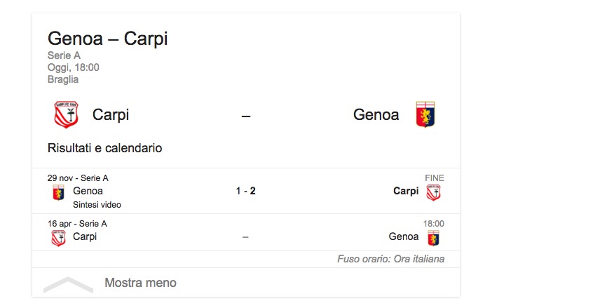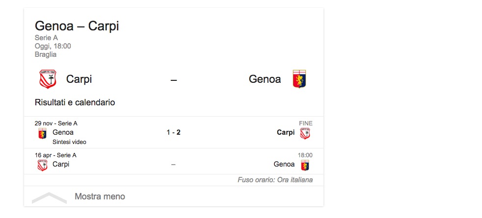 MODENA – Carpi-Genoa, streaming e diretta tv: dove vedere Serie A. Carpi-Genoa, partita valida per la 33esima giornata del campionato italiano di calcio di Serie A, verrà trasmessa in diretta tv da Sky Sport e Mediaset Premium alle ore 18.00 ed in diretta streaming su pc, cellulari smartphone e tablet grazie alle applicazioni SkyGo e PremiumPlay. Classifica e calendario del campionato italiano di calcio di Serie A.