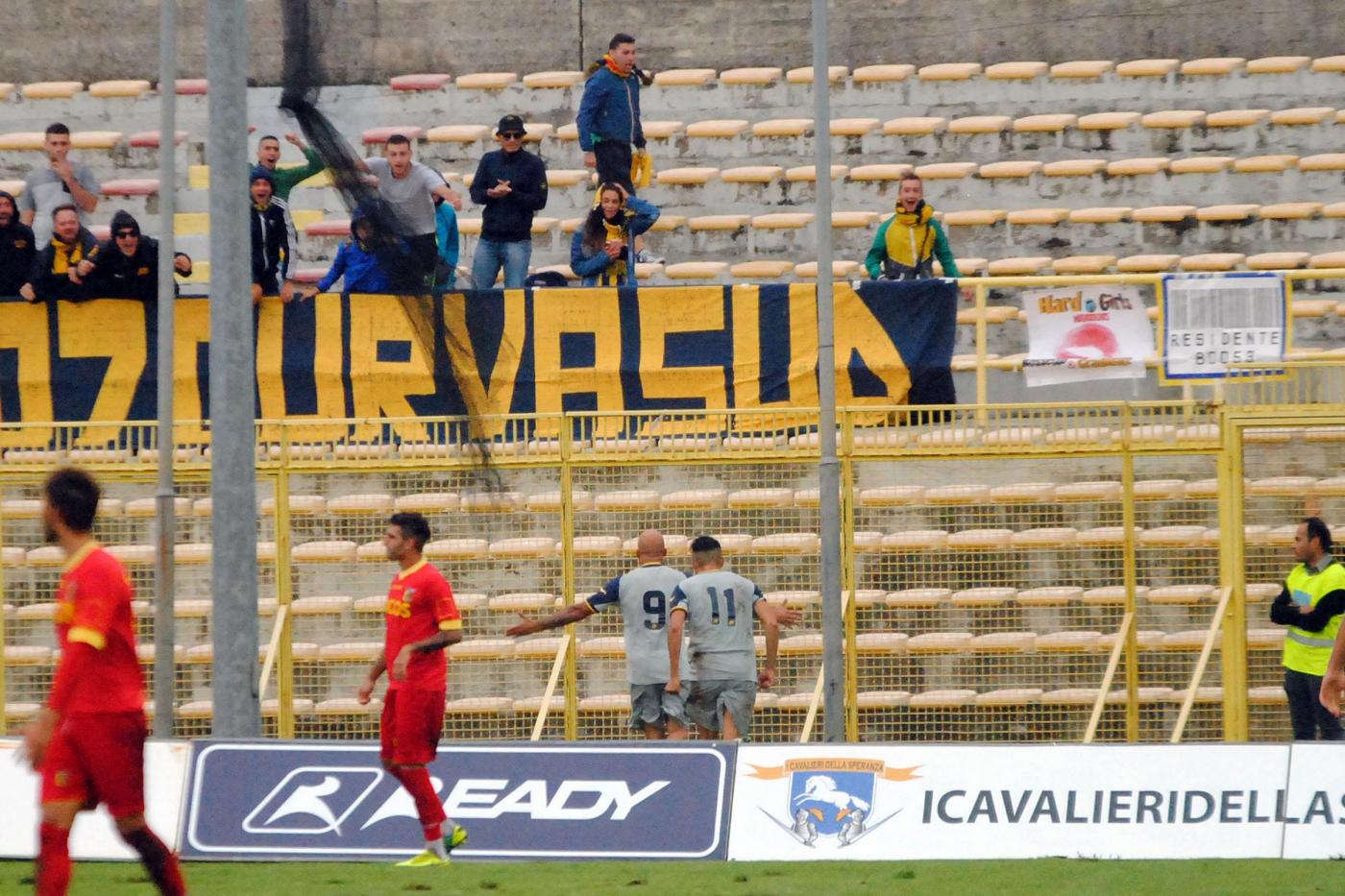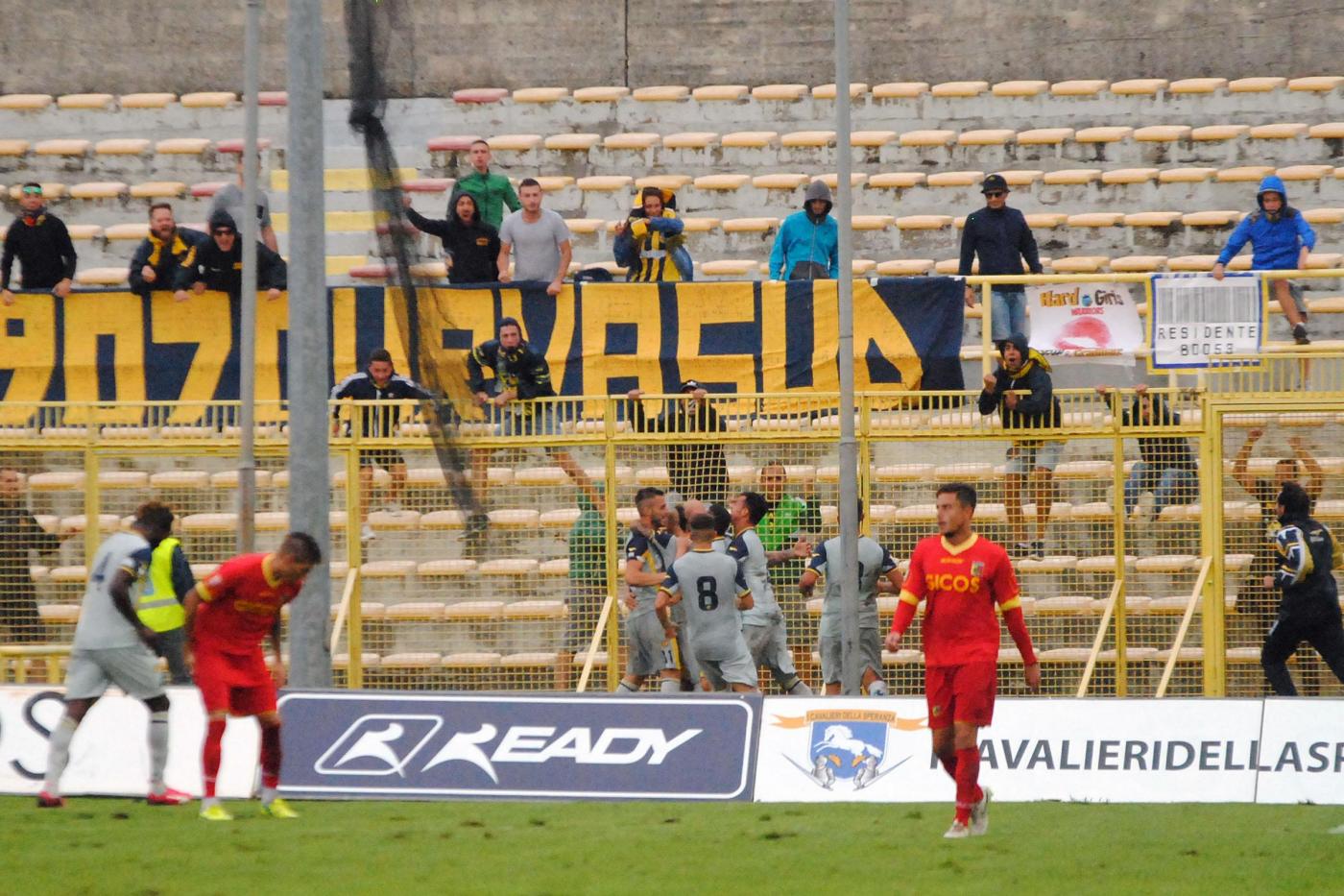 In the pic: Francesco Ripa celebrated under the fans of Juve Stabia