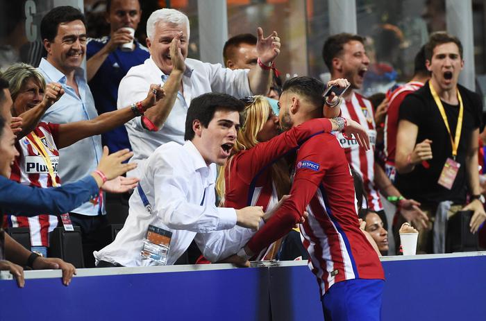 epa05334739 Yannick Carrasco of Atletico Madrid celebrates after scoring the 1-1 equalizer during the UEFA Champions League Final between Real Madrid and Atletico Madrid at the Giuseppe Meazza stadium in Milan, Italy, 28 May 2016. EPA/DANIEL DAL ZENNARO
