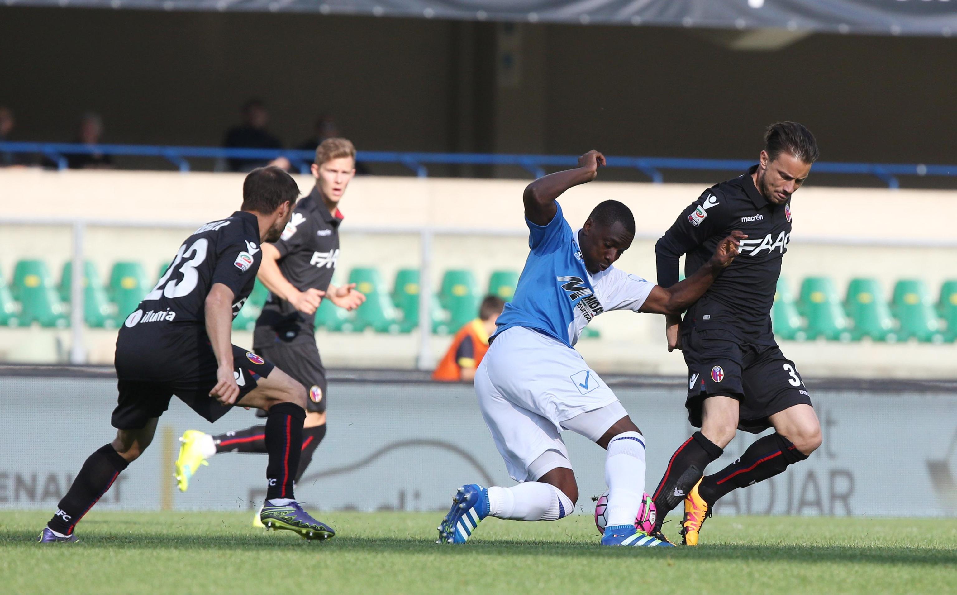 VERONA – Chievo-Bologna 0-0: foto e pagelle partita Serie A. Chievo-Bologna 0-0: foto e pagelle partita Serie A. Chievo e Bologna 0-0 in una partita dell’ultima giornata della serie A. Chievo (4-3-1-2): Seculin 6.5; Sardo 6 (37′ pt Costa 6), Gamberini 6, Spolli 6, Cacciatore 6; Pinzi 6, Rigoni 6, Hetemaj 5.5; M’Poku 5.5; Floro Flores 5.5 (20′ st Inglese 6), Pellissier 6 (15’st Meggiorini 5.5). (1 Bizzarri, 32 Bressan, 10 Ninkovic). All.: Maran 6.