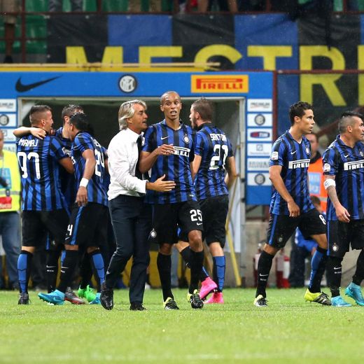 INTER: Handanovic; Davide Santon, Medel, Murillo, Telles; Kondogbia, Felipe Melo, GuarÃn; Stevan Jovetić,  Mauro Icardi, PeriÅ¡ić. All: Roberto Mancini. Foto dall’archivio dell’Ansa.
