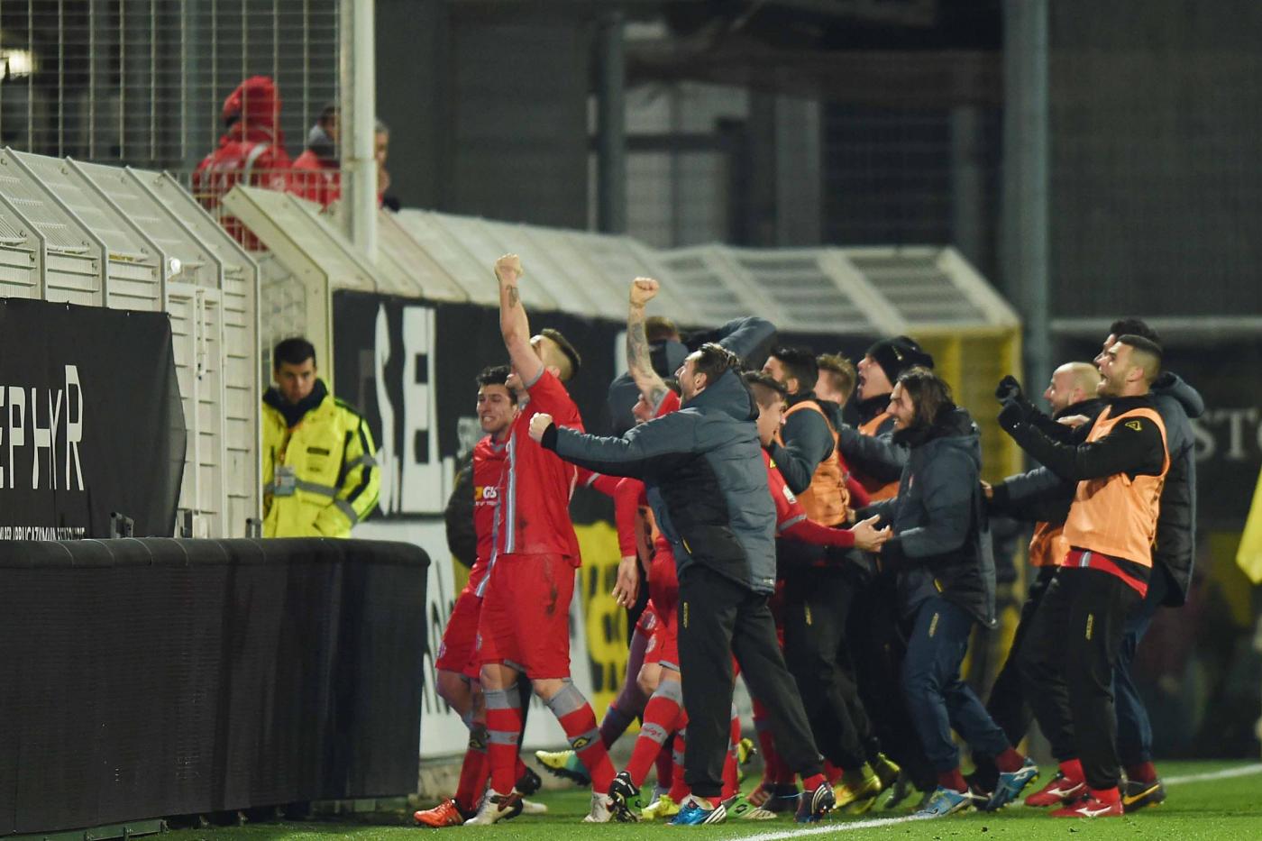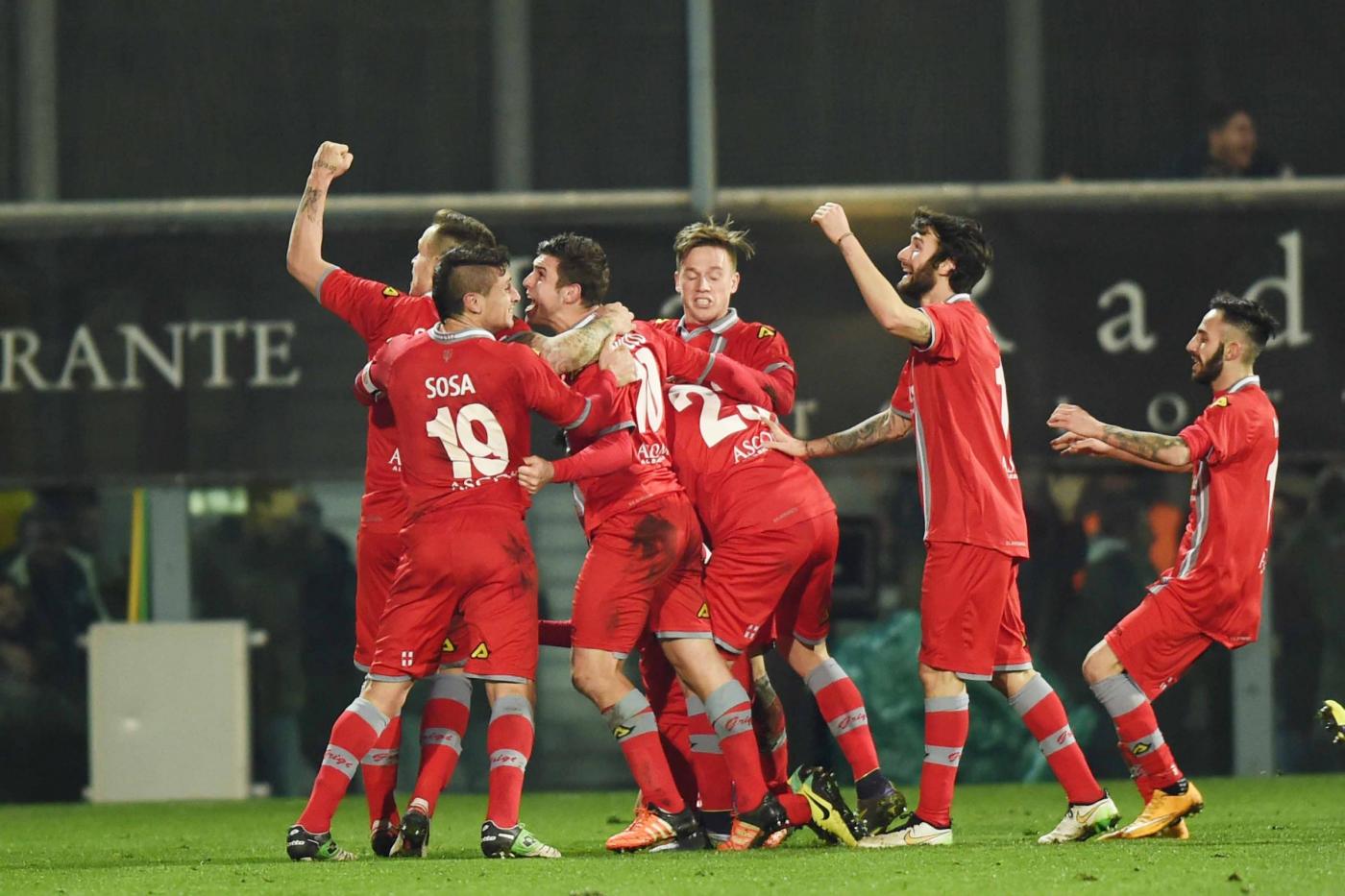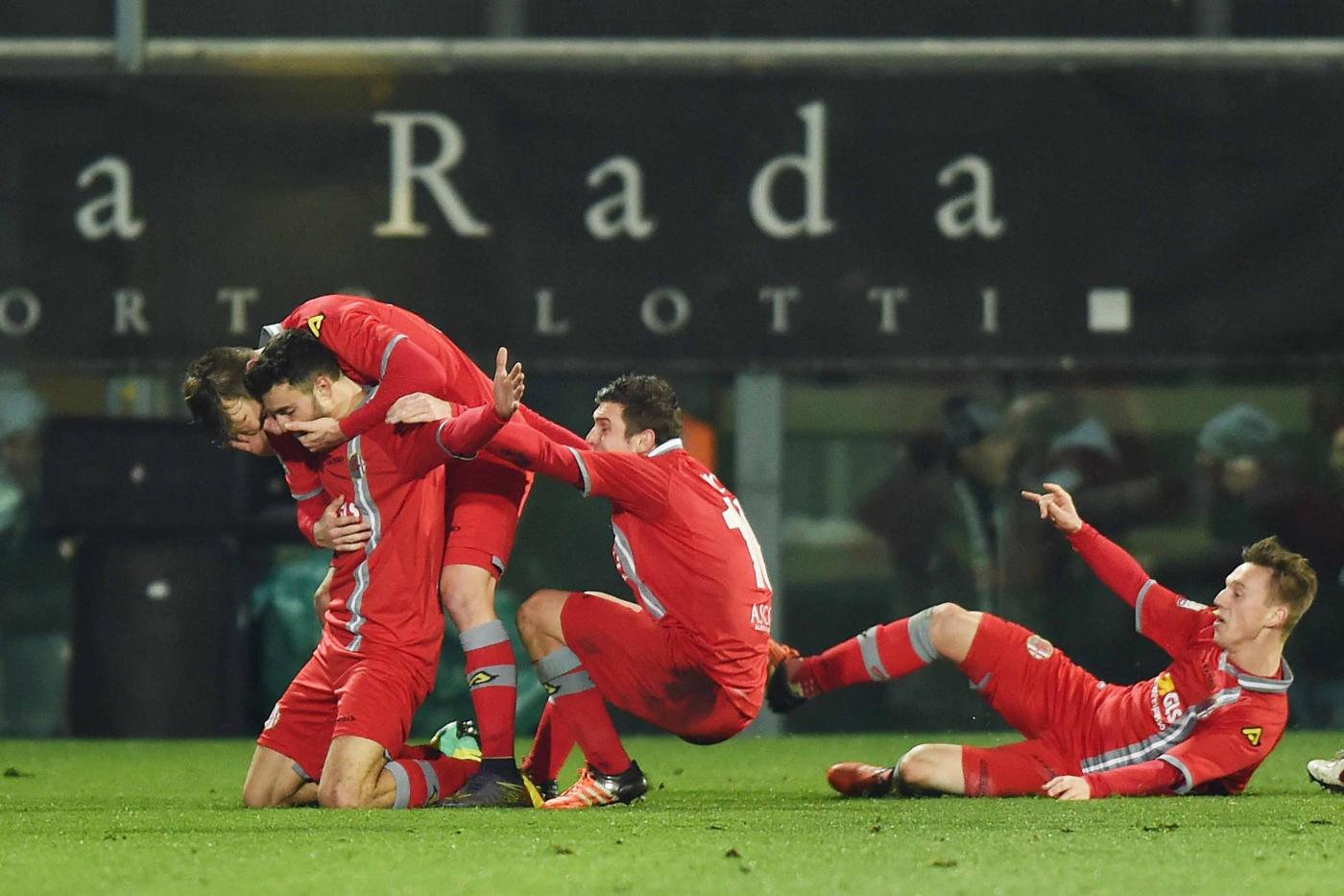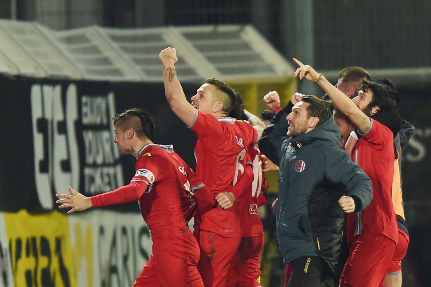 E’ Bocalon l’uomo della serata: entrato al 25′ della ripresa segna entrambe le reti che consegnano la squadra di Gregucci alla storia: al 38′ sfrutta un’indecisione dei centrali difensivi e a tu per tu con Chichizola non sbaglia, al 45′ raddoppia di testa su cross di Marras. Finale caldo, con i ‘grigi’ che resistono bene agli assalti della squadra di Di Carlo e al triplice fischio dell’arbitro possono festeggiare l’impresa, acclamati dai quasi 2000 tifosi arrivati dal Piemonte.