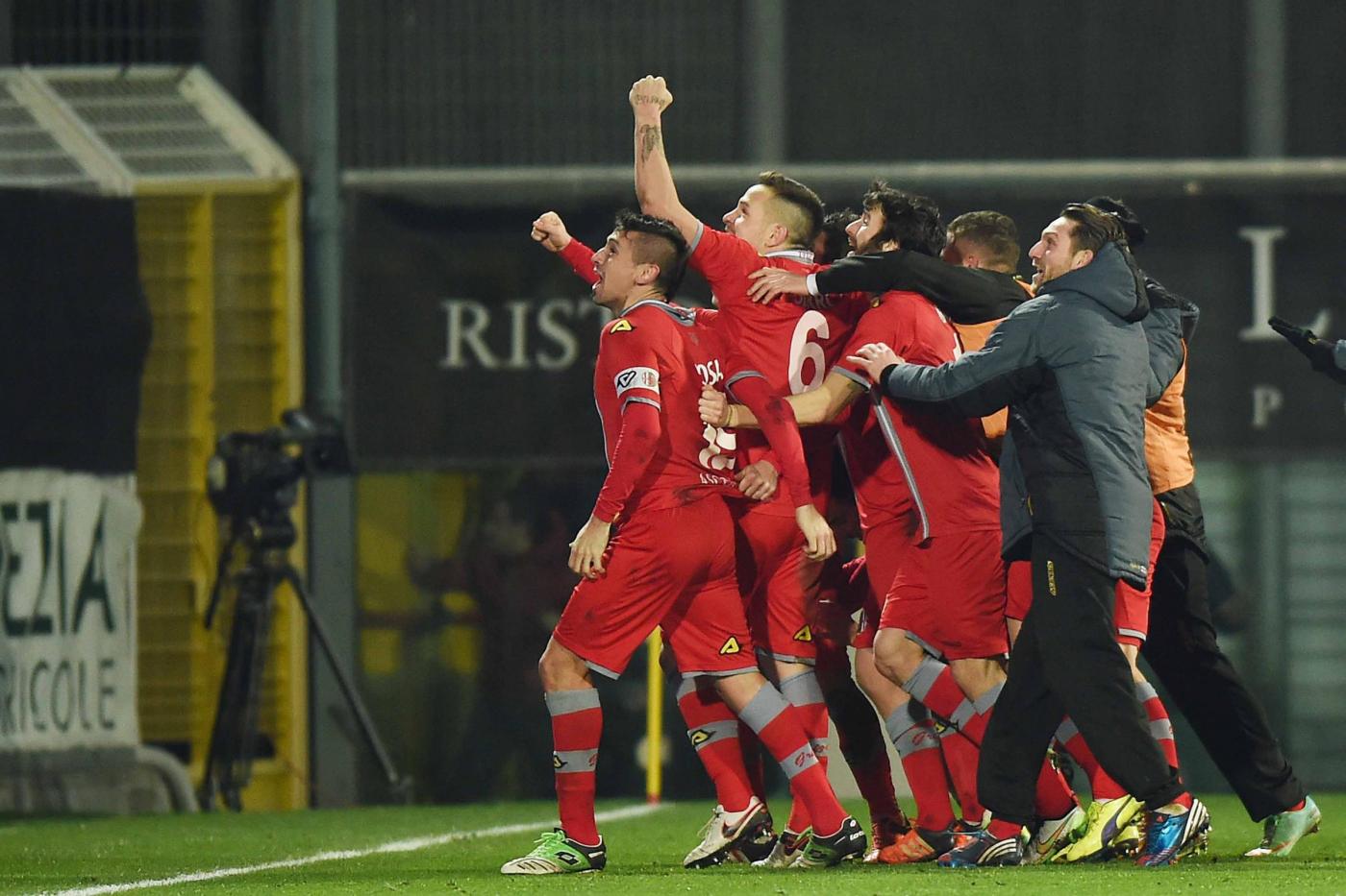 In una citta’ blindata per garantire l’ordine pubblico, in uno stadio ‘Picco’ tutto esaurito, l’insolita sfida tra i ‘bianchi’ di Serie B e i ‘grigi’ di Lega Pro, ha visto i piemontesi mettere a segno il colpaccio, rimontando l’iniziale svantaggio per poi ribaltare la contesa sul finire del match, grazie alla doppietta del neoentrato Bocalon.