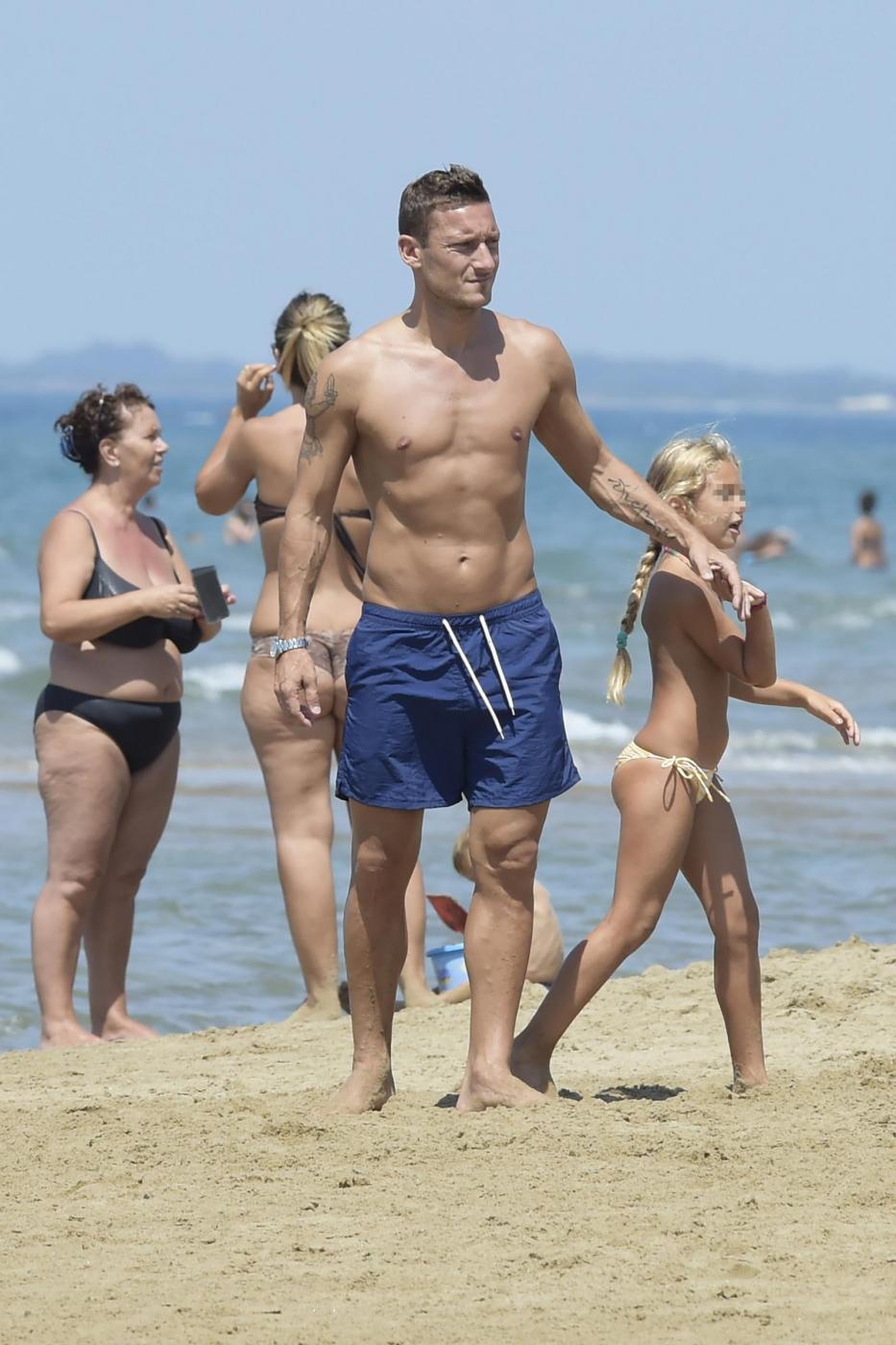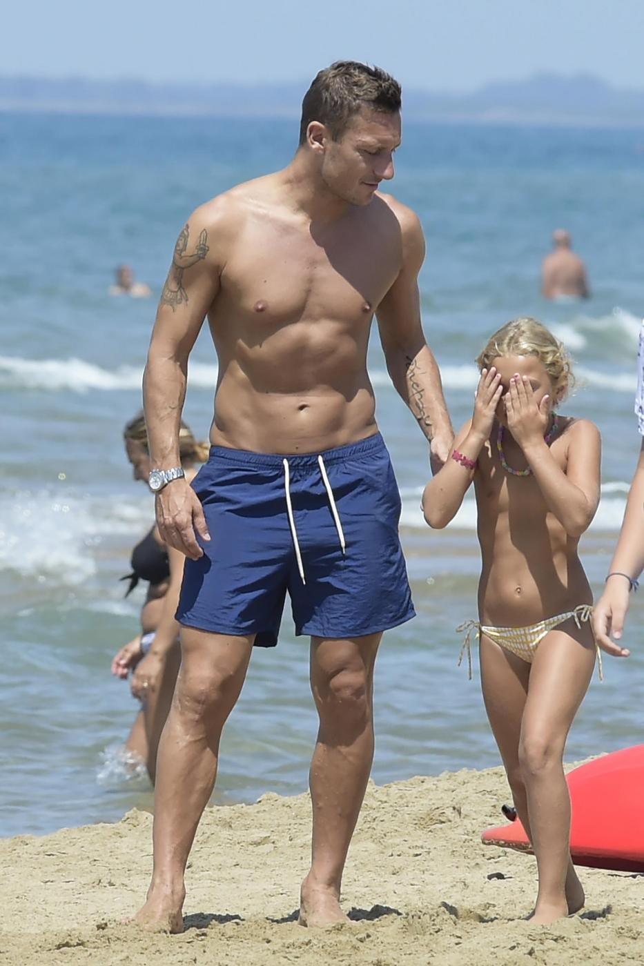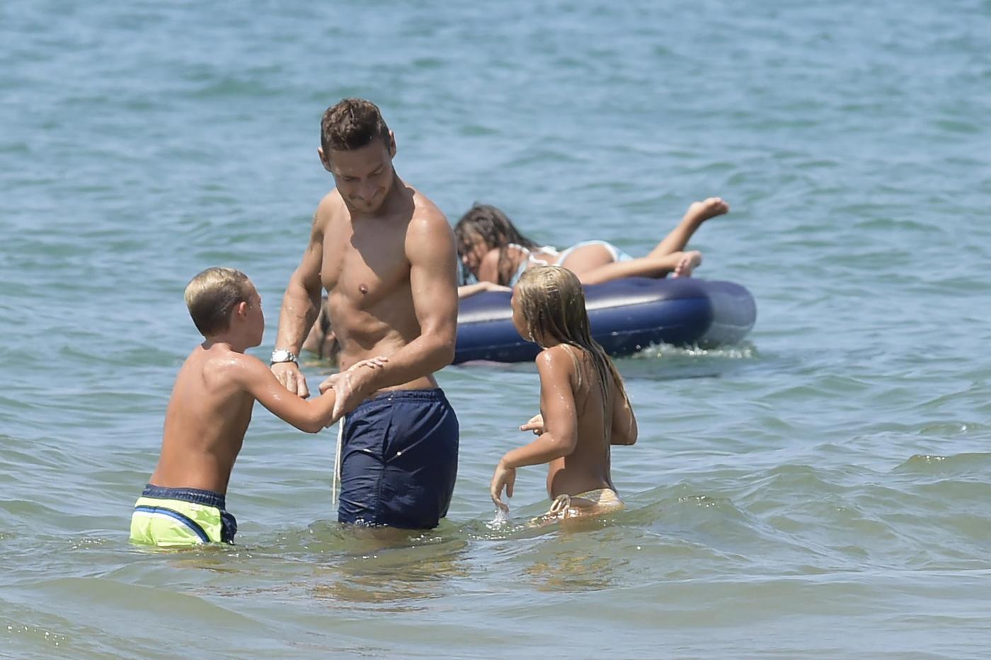 Francesco Totti gioca con il figlio Cristian (LaPresse)