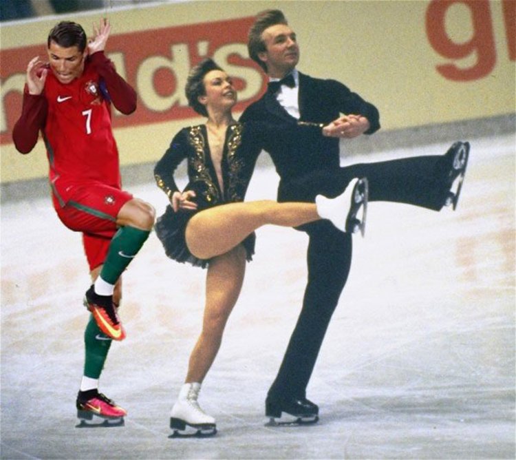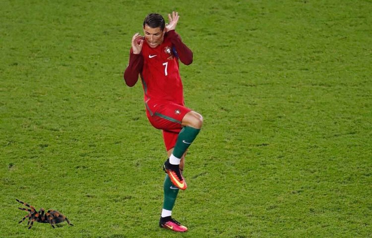 Poi, però, il fuoriclasse portoghese ci ha messo del suo. Ad esempio arrivando allo stadio prima della partita con l’Austria con indosso delle stranissime calze. L’impatto è spiazzante: Ronaldo sembra in qualche modo vestito da donna. Poi arriva la disastrosa partita con l’Austria. Tanti errori, il portiere avversario insuperabile e l’errore dal dischetto proprio di Cr7 che impedisce ai portoghesi di vincere. E la beffa: uno dei tanti fotografi a bordo campo pizzica il fuoriclasse portoghese in una posa tutta da ridere: Cristiano Ronaldo sembra spaventato da qualcosa. Inevitabile, vista anche la povertà di spunti offerti da Cr7 in campo, che il web si scateni. Piovono fotomontaggi di tutti i tipi e il protagonista è sempre lui: Cr7 spaventato. Per ora, insomma, a livello di immagine per Ronaldo è un europeo davvero da dimenticare. Le foto.
