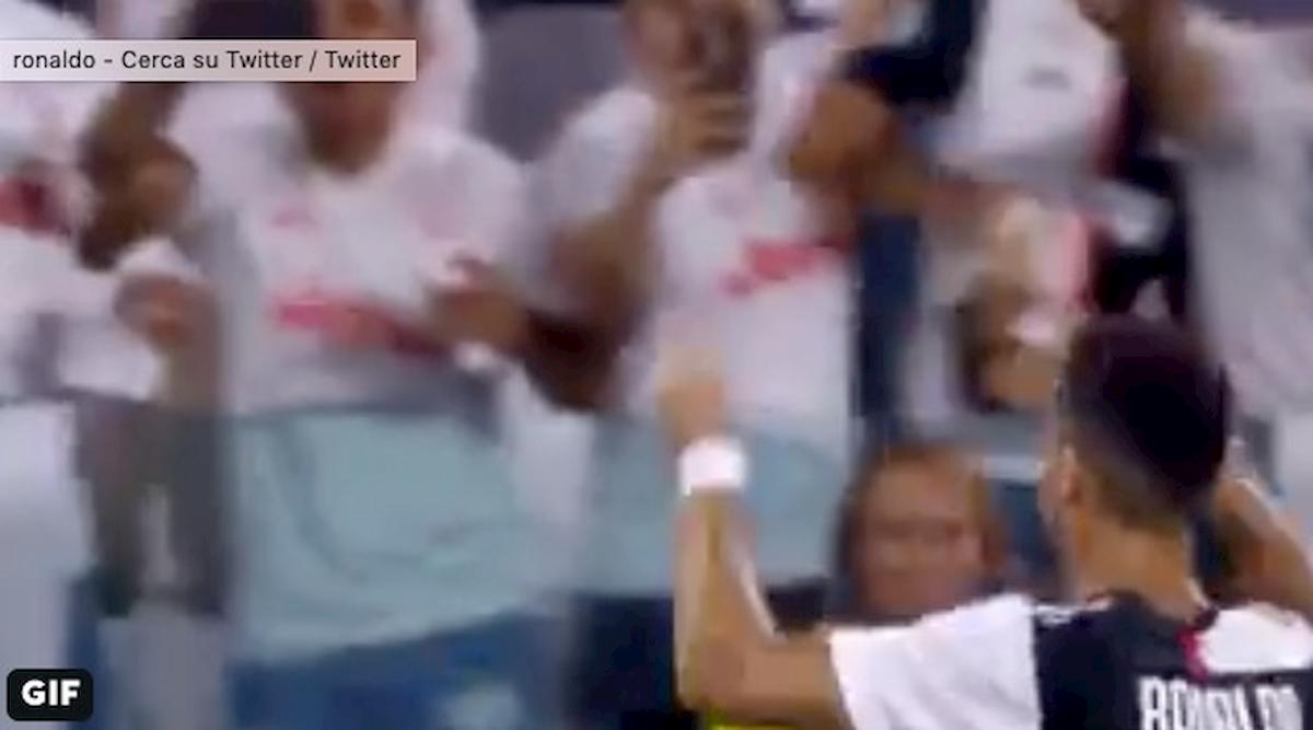 Cristiano Ronaldo segna in Juventus-Napoli ed esulta contro il VAR (da Twitter)