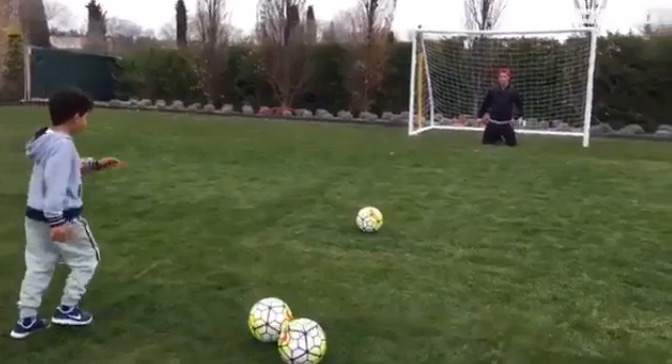 YouTube, Cristiano Ronaldo sfida figlio ai rigori. VIDEO