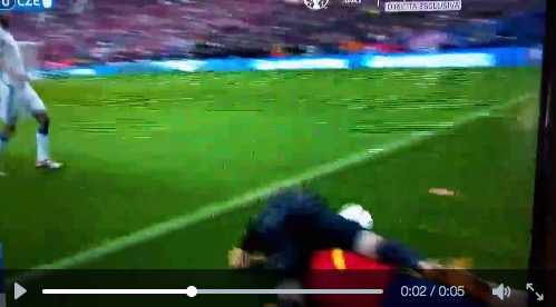 VIDEO – Rigore assegnato alla Spagna per un fallo su David Silva. Subasic respinge la conclusione di Sergio Ramos su suggerimento di Srna che, a sua volta, era stato consigliato da Modric che è compagno di squadra di Ramos nel Real Madrid.