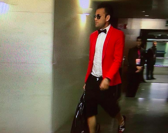 BARCELLONA, SPAGNA – Spettacolo in campo tra Barcellona e Bayern Monaco ma anche nella mixed zone. Dani Alves si è presentato con una giacca rossa abbinata a bermuda e ciabatte. Un look quantomeno stravagante.
