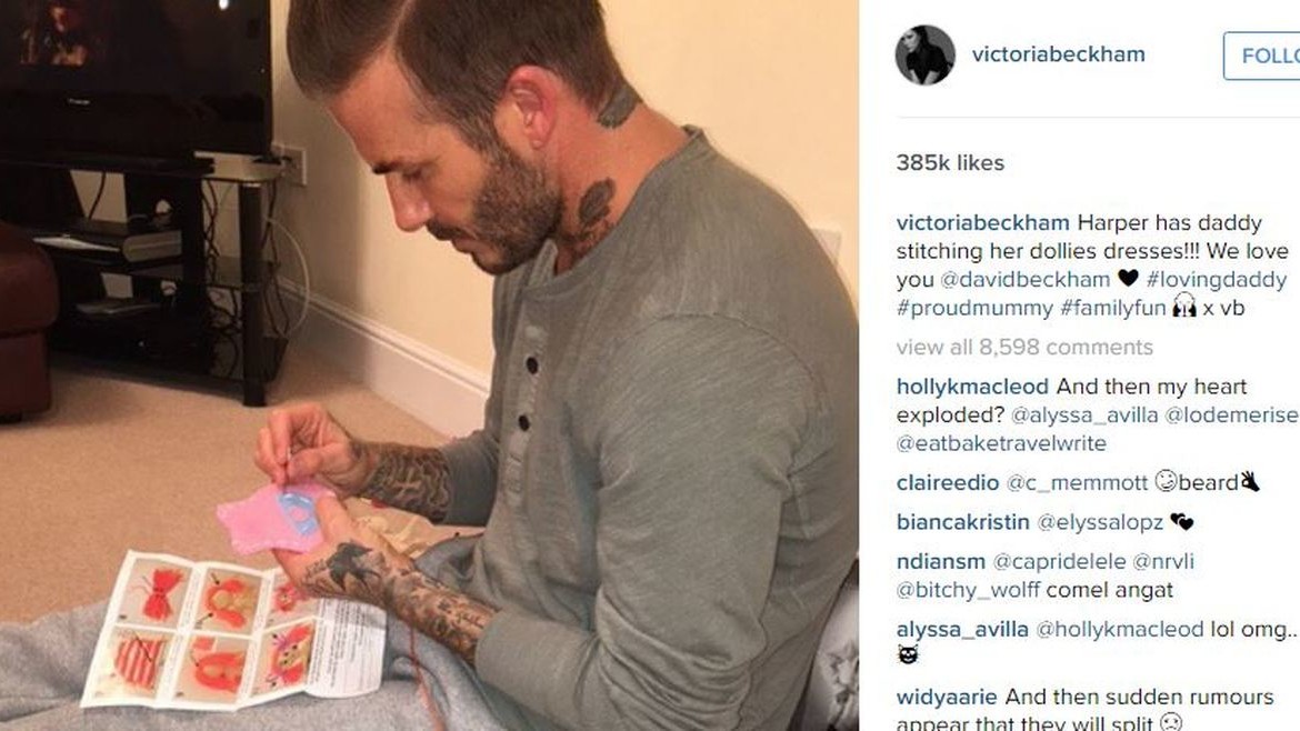 ROMA – David Beckham è un papà modello e Victoria Adams ha postato con orgoglio le foto del marito mentre cuciva i vestitini per le bambole della figlia Harper.