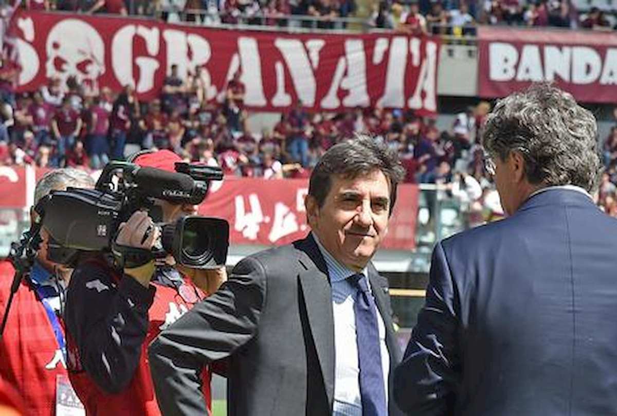 Urbano Cairo in bella mostra davanti ai tifosi del Torino. Il suo intervento รจ stato decisivo ai fini della trasmissione tv di Debrecen-Torino (foto Ansa)