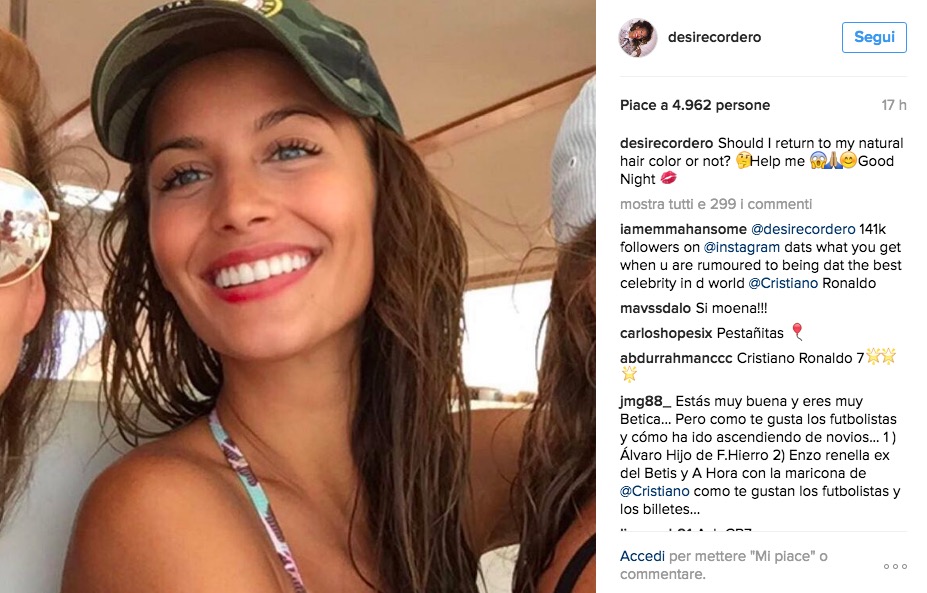 MADRID – L’ultima fiamma di Cristiano Ronaldo è la modella Desiré Cordero, vincitrice di Miss Spagna. Il fuoriclasse del Real Madrid, archiviata la lunga storia d’amore con Irina Shayk, ha deciso di farsi un altro ‘regalo’ dopo la vittoria ad Euro 2016 e i trionfi con i ‘blancos’. Si tratta della bellissima Desiré Cordero, considerata da molti come la donna più bella di Spagna.