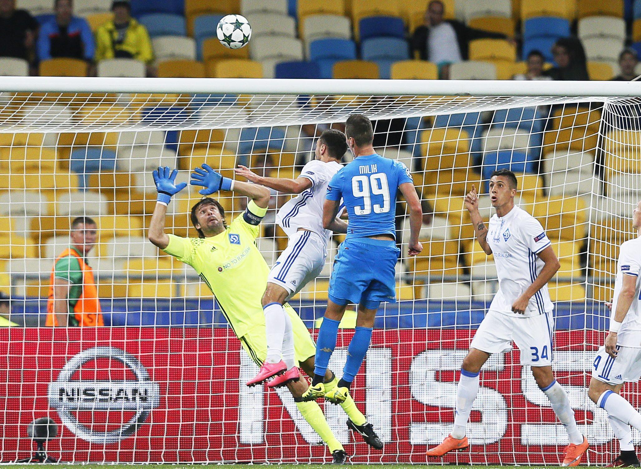 Una doppietta di Milik ed il Napoli vola al debutto in Champions League sul campo della Dinamo Kiev con una vittoria che fa classifica e morale al tempo stesso. Gli azzurri balzano subito in testa al girone B approfittando del pareggio casalingo del Benfica che viene bloccato dal Besiktas. Grazie a due colpi di testa del polacco il Napoli prima raggiunge e poi supera gli ucraini che erano andati in vantaggio a metà del primo tempo, anche a causa di una distrazione della retroguardia azzurra.