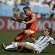 Un minuto dopo la rete di Di Maria, la Svizzera ha fallito di un soffio il pareggio, con il subentrato Dzemaili che, di testa su punizione di Shaqiri, ha colpito la base del palo alla destra di Romero, poi sugli disperati tentativi degli elvetici c’è stata una punizione dalla lunetta dell’area che ancora Shaqiri, maestro del dribbling, ha sprecato calciando sulla barriera: è stato il segnale della resa.