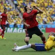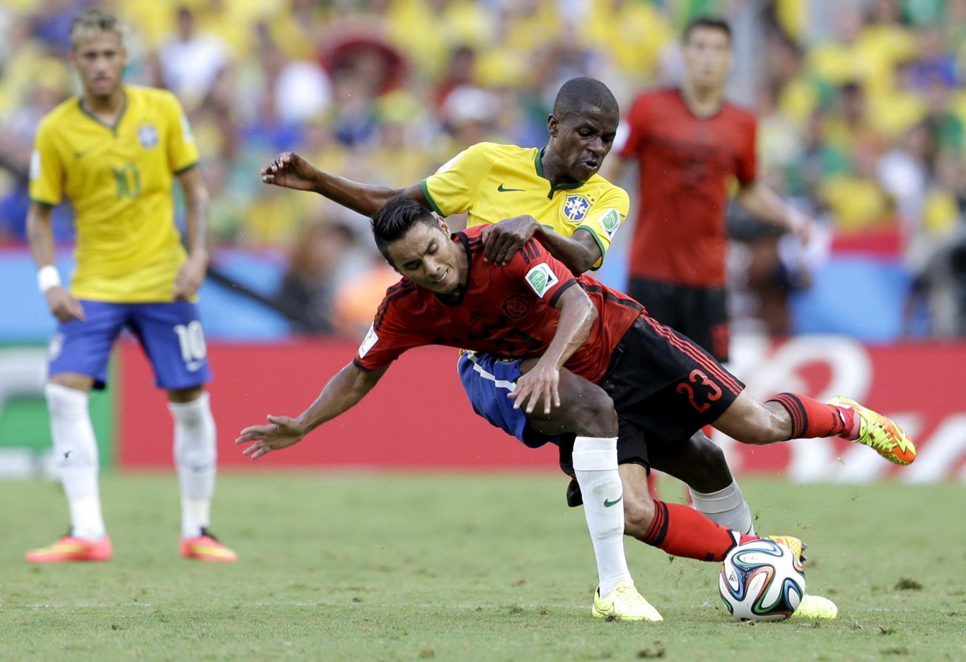 Insomma è un Brasile che per ora non sembra all’altezza di altre rivali viste all’opera finora, come la Germania di ieri, e che tiene botta e sarà pericoloso da qui alla fine principalmente per il fattore campo, anche se Scolari è sempre pronto ad inventarne una delle sue. Ma in avanti Fred si batte però non incide, e tutto dipende troppo dal talento e dall’ispirazione di Neymar. E se il n.10 non è al meglio come oggi, di gol non se ne vedono, a meno di prodezze individuali al momento improbabili, se è vero che anche Oscar ha vissuto una giornata nera. Non bene anche Bernard e Jo, mandati in campo nella ripresa, il primo al posto dell’inesistente Ramires (sostituto di giornata di Hulk) e l’altro di Fred.
