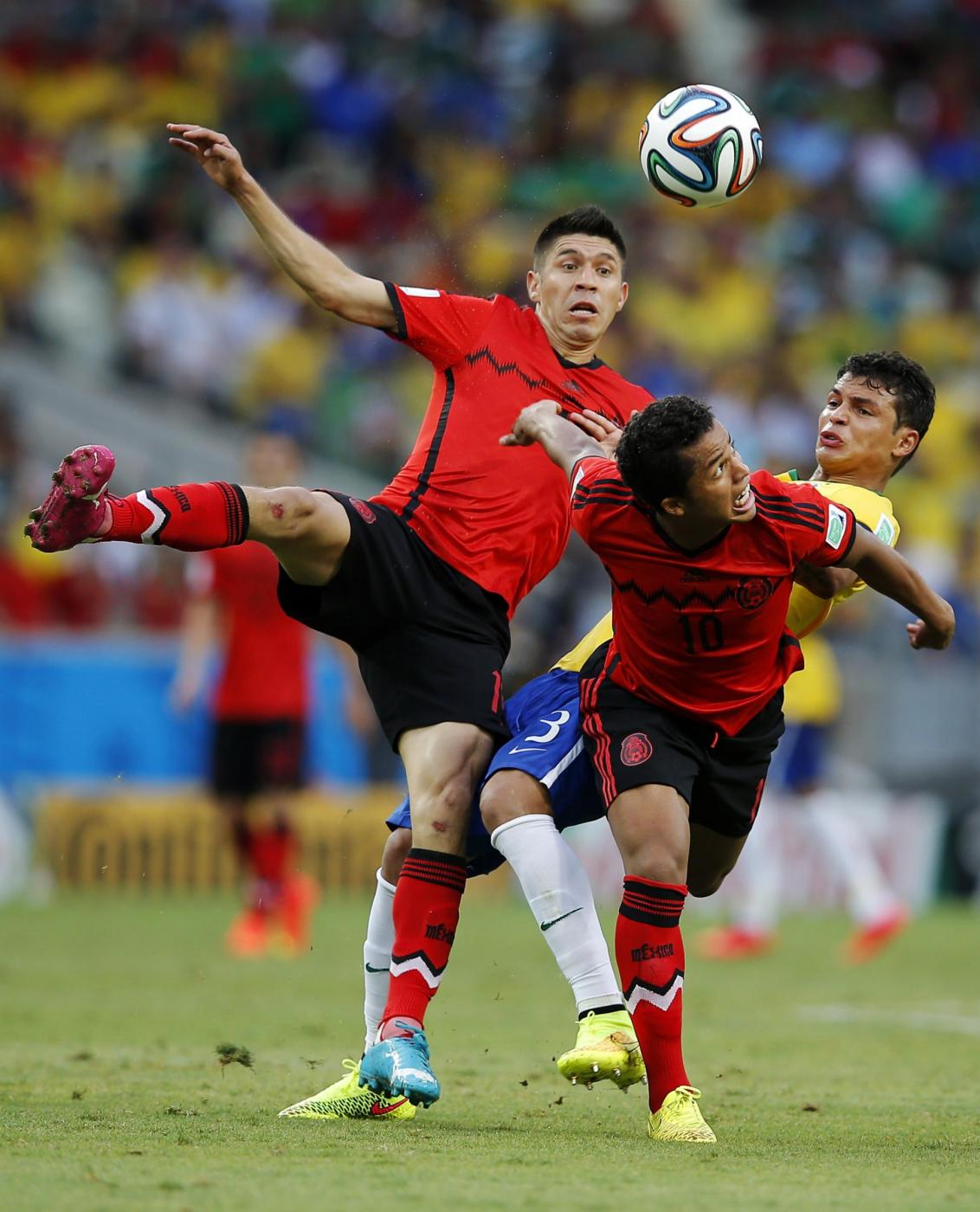 Nella ripresa invece Ochoa ha salvato i suoi prima respingendo con il corpo un tiro di Neymar e poi intervenendo con un riflesso miracoloso sul colpo di testa a botta sicura di Thiago Silva. Così, a forza di miracoli del portiere messicano, a milioni di brasiliani l’urlo di gioia è rimasto in gola.