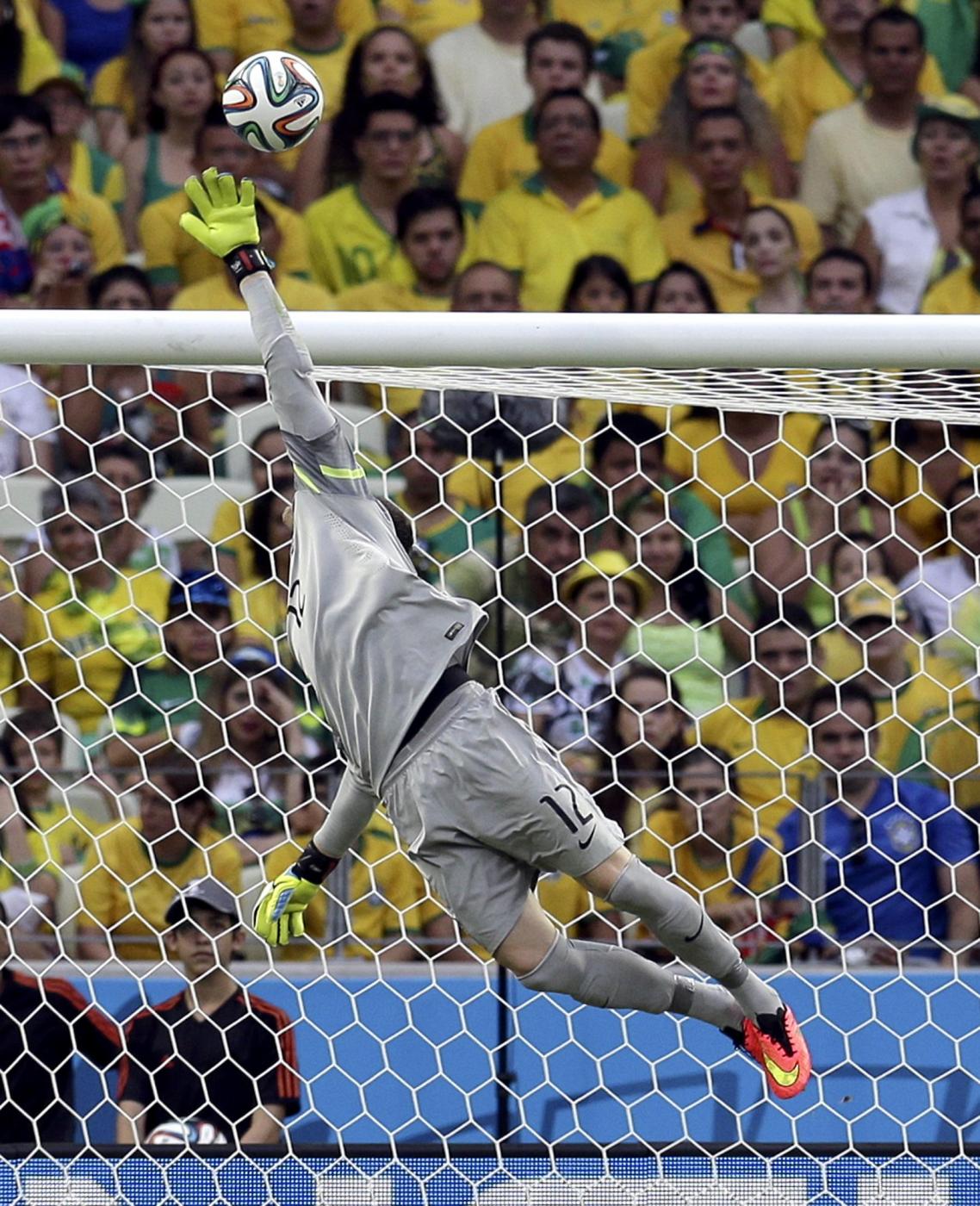 il primo intervento decisivo lo ha compiuto nel primo tempo su colpo di testa di Neymar, il secondo su conclusione ravvicinata di Paulinho, unici lampi di un Brasile che nel primo tempo non ha quasi mai sfondato il muro avversario.