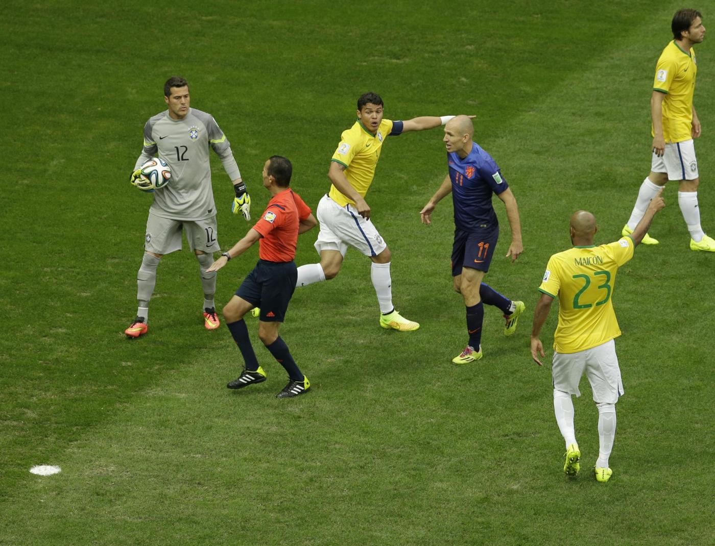 Contro l’Olanda che chiude il Mondiale imbattuta (con l’Argentina ha perso ai rigori), la Selecao ha incassato il primo gol dopo appena tre minuti, quando l’incerto arbitro algerino Haimoudi ha fischiato il rigore per un fallo di Thiago Silva su Robben.
