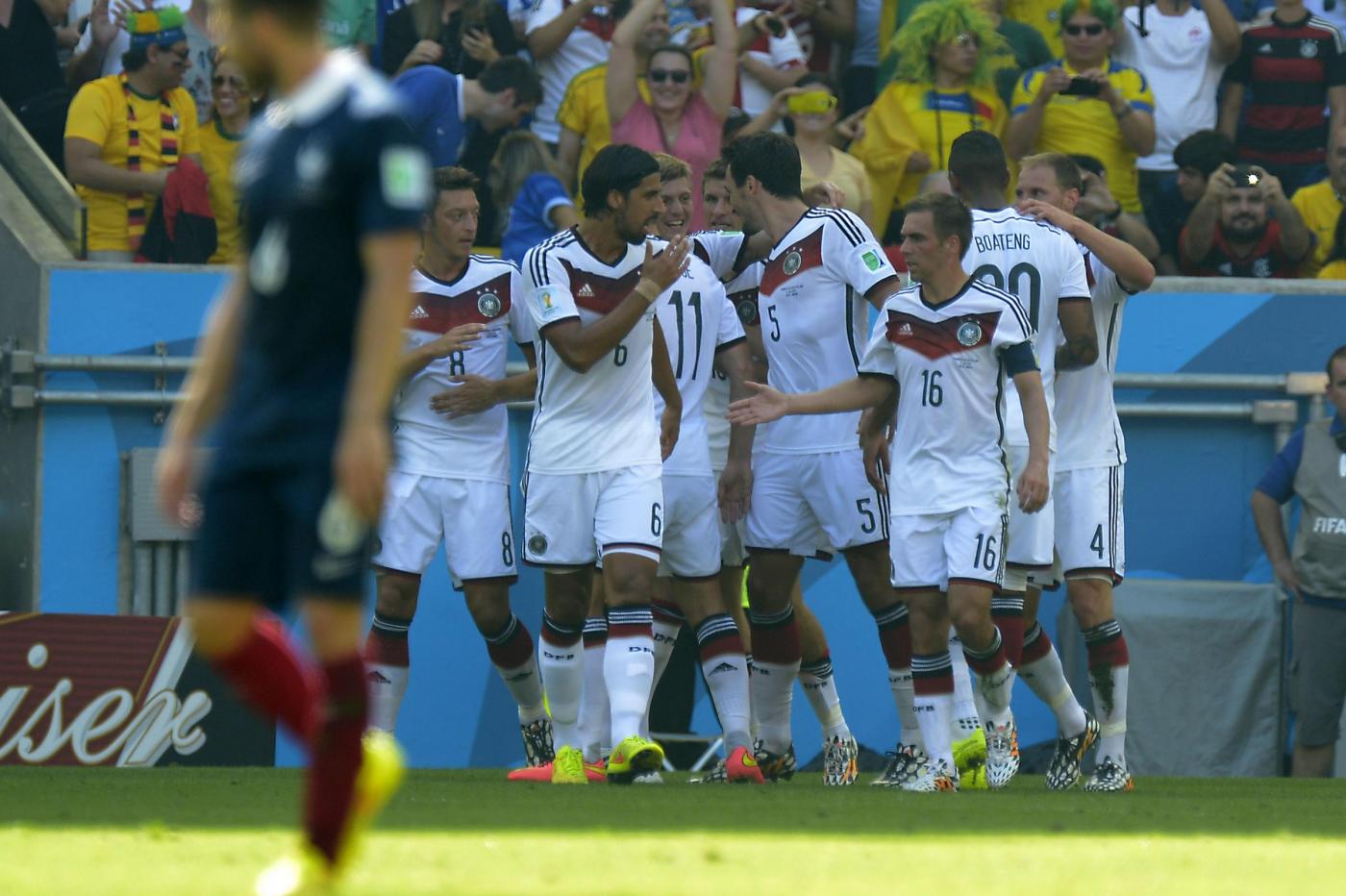 E’ la Germania la prima semifinalista del Mondiale brasiliano. Ci riesce al termine di una partita condizionata dalle condizioni meteo (28 gradi con l’80% di umidità) in cui è stata abile e fortunata a passare in vantaggio dopo 13 minuti, con un colpo di testa dell’ottimo Hummels, e che poi si è limitata a controllare.