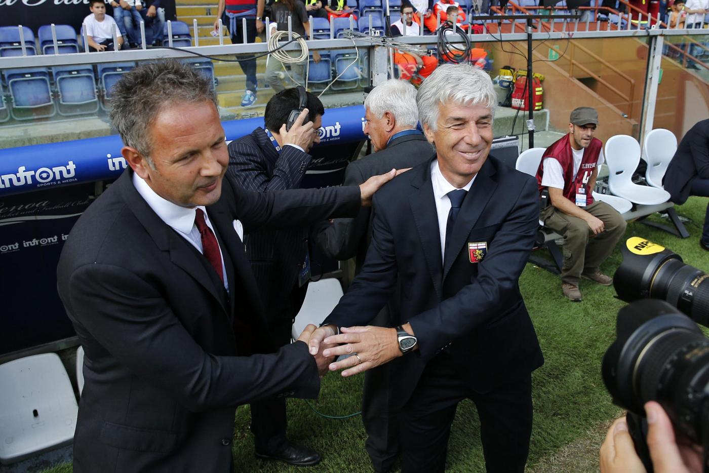 Gasperini riesce a presentare un centravanti, recuperato dall’ infortunio, dopo le scelte con la Juventus di partire senza Pandev, poi espulso con la Lazio. In tribuna c’è l’allenatore della nazionale Antonio Conte che osserva Balotelli, oltre che Romagnoli e Bertolacci. Il primo tempo però è tutto di marca Genoa, che va meritatamente in vantaggio con la punizione di Dzemaili.