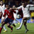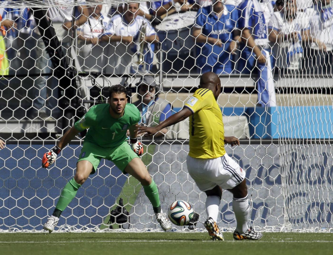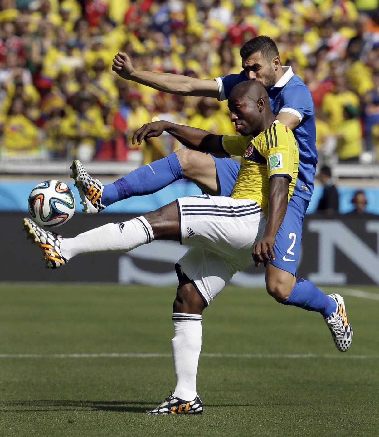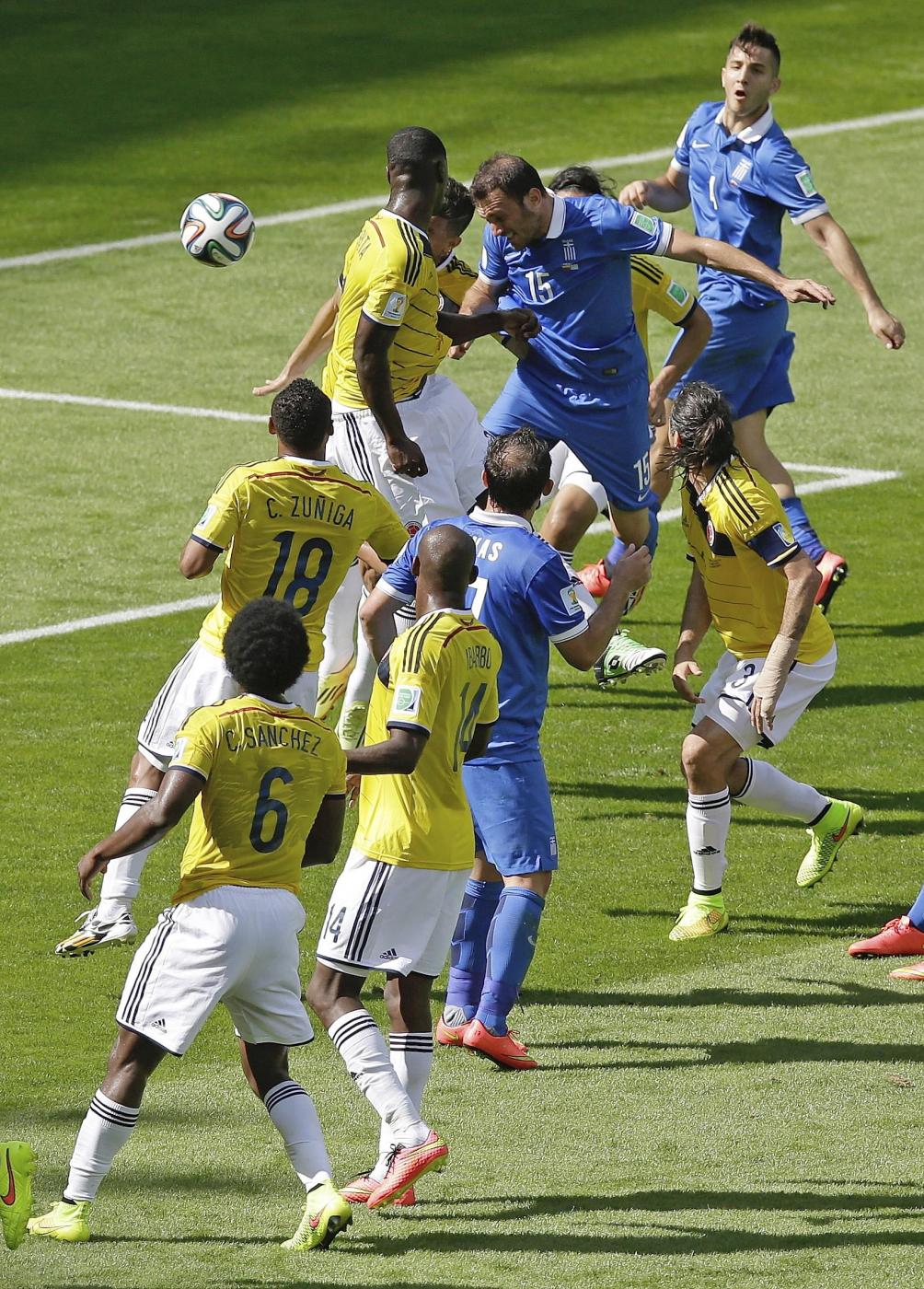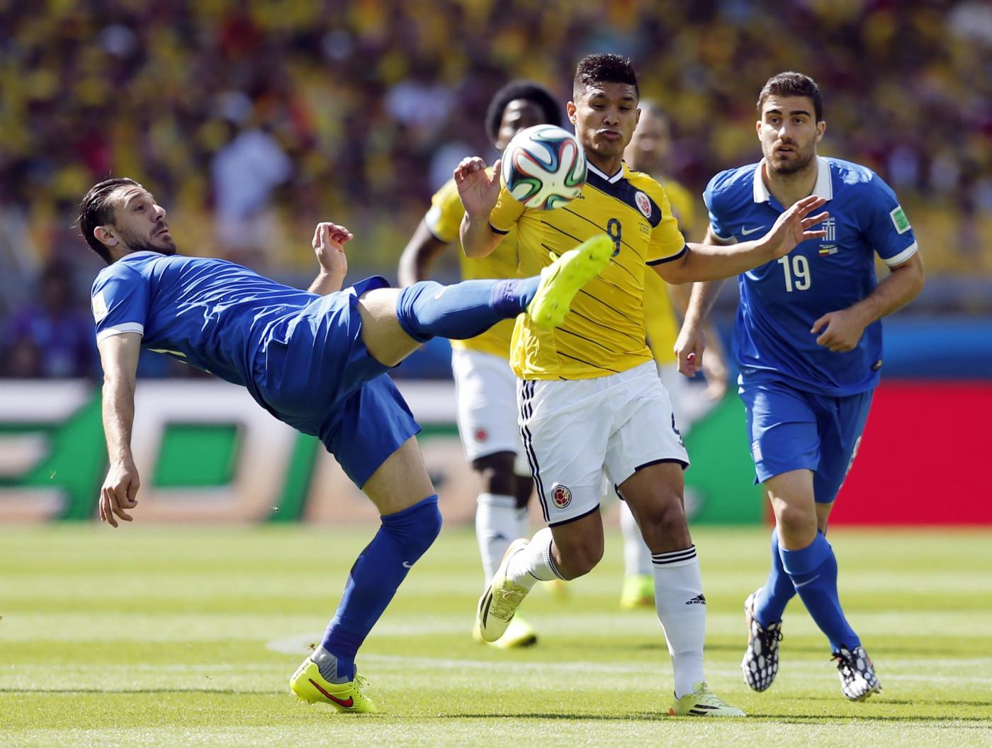 testardo spunto di Gekas, il rimpallo favorisce Kone , il cui tiro a giro viene deviato da Ospina. Nella ripresa i greci si scoprono e los Cafeteros raddoppiano al 13′: su angolo Aguilar devia il pallone che spiazza la difesa, Teo Gutierrez si fa trovare pronto per la deviazione vincente.